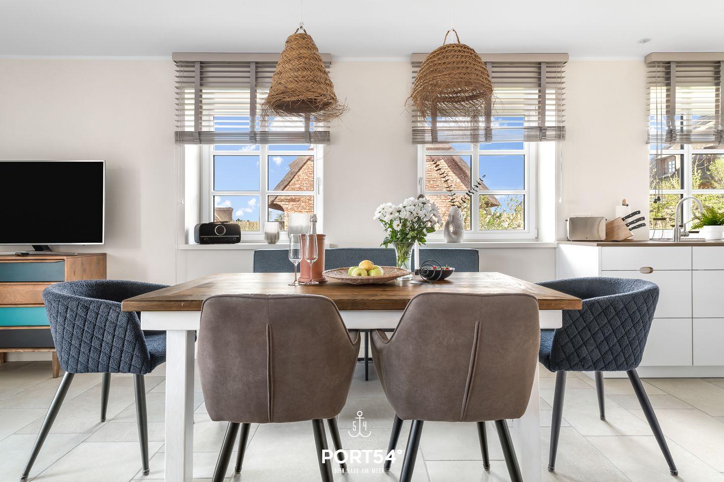 Das 2023 erbaute, nachhaltige Reetdachhaus auf den Schleiterrassen bietet auf drei Etagen Platz für bis zu 4 Personen. Mit 2 Schlafzimmern, 2 Bädern, offener Galerie, lichtdurchflutetem Wohn-/Essbereich und Terrasse mit Schleiblick ist es ideal für einen entspannten Urlaub. Carport, abschließbarer Fahrradraum und Garten sorgen für Komfort. Ruhige Lage, moderne Ausstattung und Naturnähe machen das Ferienhaus perfekt für Erholung.