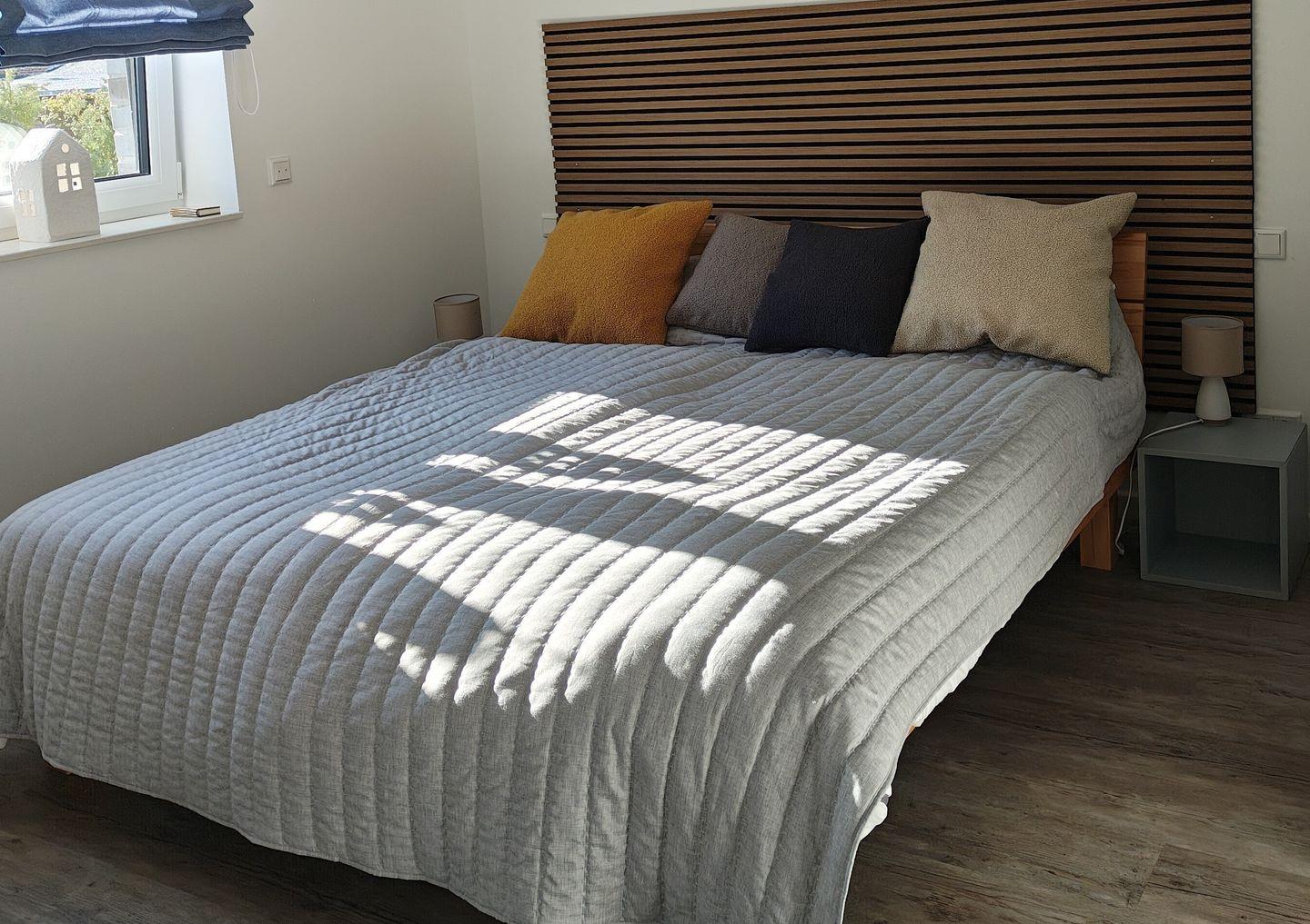 Das große Schlafzimmer verfügt über ein Doppelbett (180 x 200 cm) mit offenem Fußende, getrennten Matratzen und verstellbaren Lattenrosten, einen Kleiderschrank und Verdunklungsmöglichkeiten. Das kleinere Schlafzimmer mit Kleiderschrank und Verdunklungsmöglichkeit verfügt über ein Einzelbett (80x200cm) mit offenem Fußende, das zu einem Doppelbett (160x200cm) erweitert werden kann.