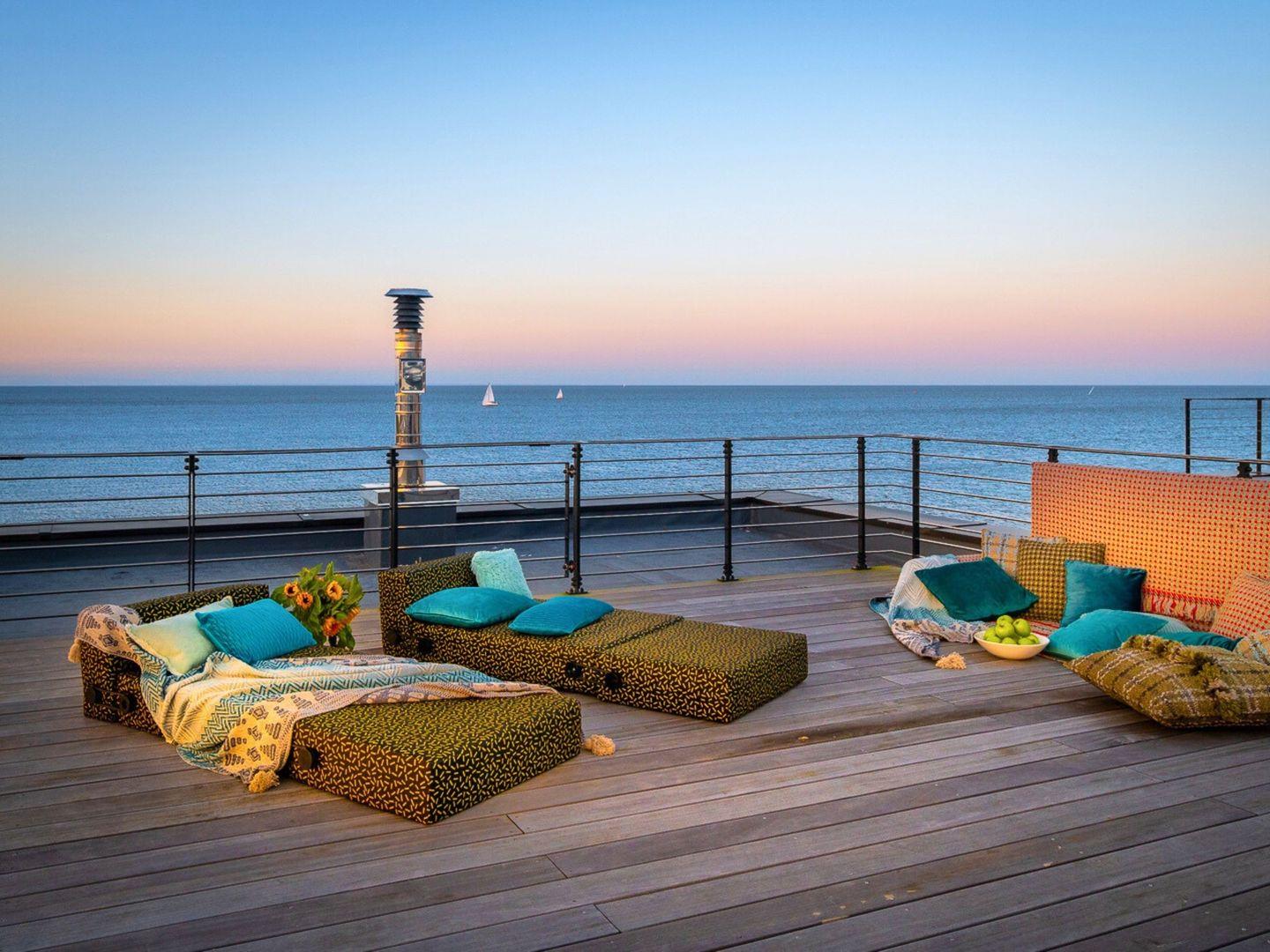 Ein Highlight der Strandvilla auf der Ostsee ist die geräumige Dachterrasse. Auf 50 Quadratmetern genießen Sie ungestört Sonnenbäder. Gleichzeitig erleben Sie den atemberaubenden 360-Grad-Blick über die Ostsee und die umliegende Natur.