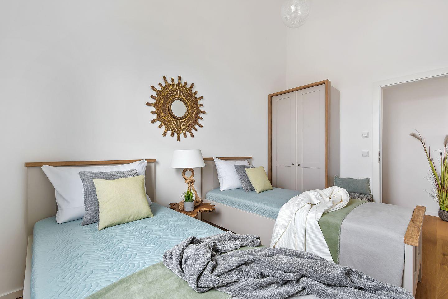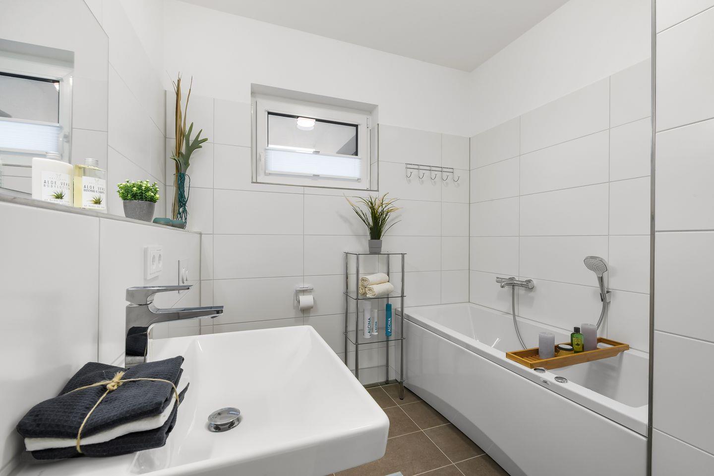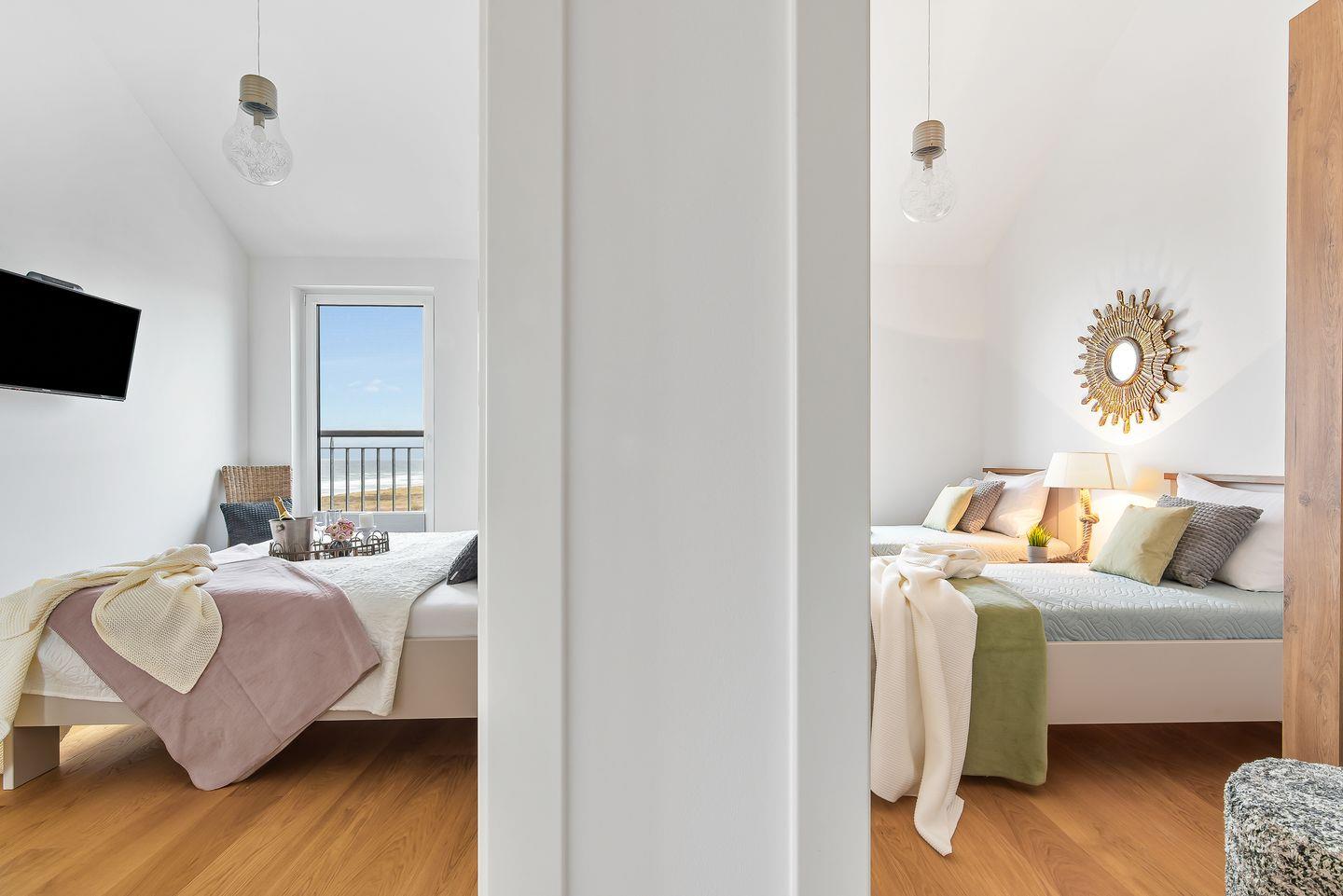 Drei Schlafzimmer mit Betten garantieren erholsamen Schlaf. Beginnen Sie den Tag entspannt mit einem Blick auf die Ostsee. Zwei Badezimmer, eines mit Whirlwanne, bieten Wellness und Komfort.