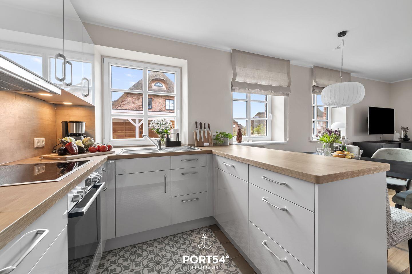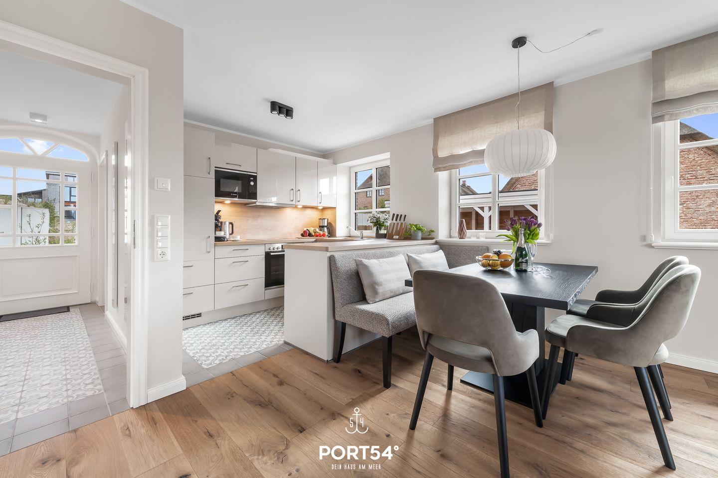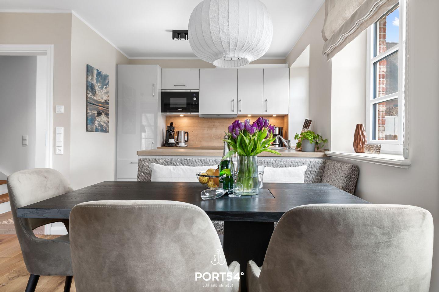 Im Erdgeschoss erwartet Dich der offene Wohn- und Essbereich mit gemütlicher Wohnlandschaft. Angrenzend zum Essbereich befindet sich die offen gestaltete Küche. Sie ist hochwertig und hervorragend ausgestattet. Ebenfalls befindet sich im Erdgeschoss ein Tageslichtbad mit ebenerdiger Dusche.