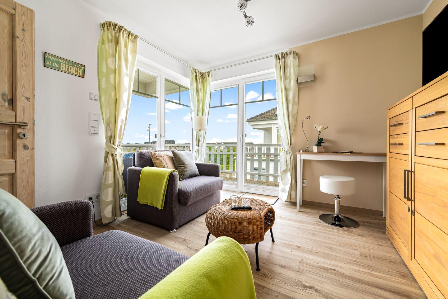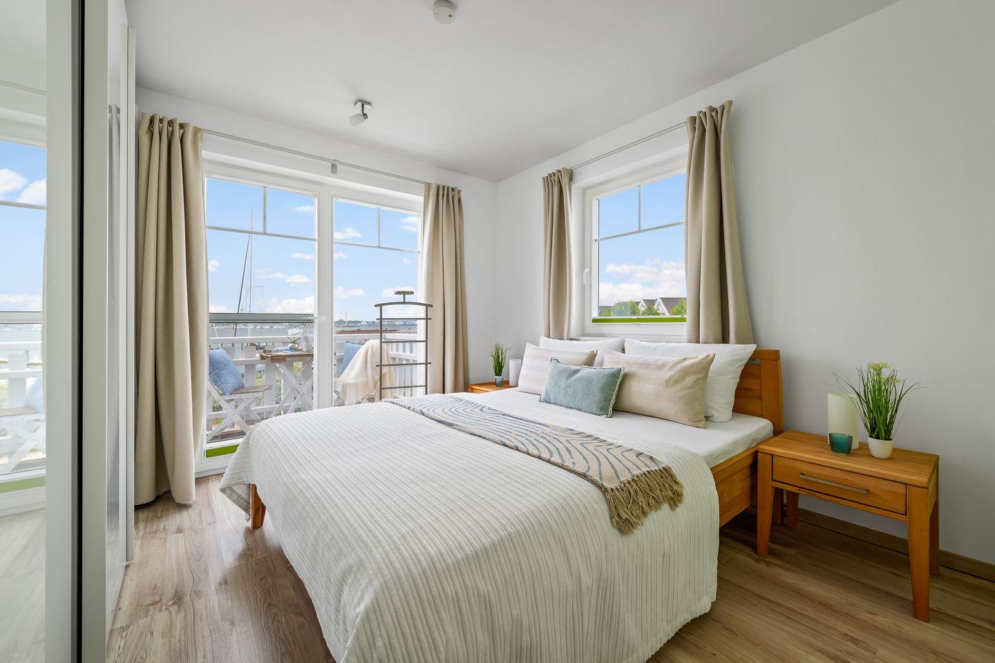 Das lichtdurchflutete Erdgeschoss des "Witthus 2" umfasst einen großzügigen Wohn- und Essbereich, der zum Mittelpunkt Ihres gemeinsamen Urlaubs wird. Die voll ausgestattete Wohnküche lässt keine Wünsche offen. Bodentiefe Fenster sorgen für viel Tageslicht und bieten direkten Zugang zur Sonnenterrasse am Yachthafen, wo Sie mit Blick aufs Wasser entspannen können. Ein Gäste-WC im Erdgeschoss bietet zusätzlichen Komfort.