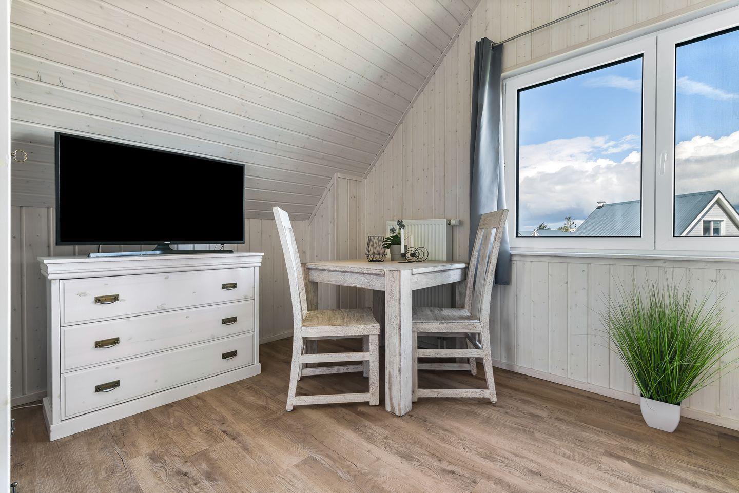 Nicht weniger einladend ist die gemütliche Terrasse mit Kamin-Grill, der sich hervorragend für entspannte Sommerabende eignet. Genießen Sie hier Mahlzeiten im Freien oder einfach nur die ruhige Atmosphäre mit Blick auf die malerische Landschaft, gepaart mit dem Duft der Ostsee.