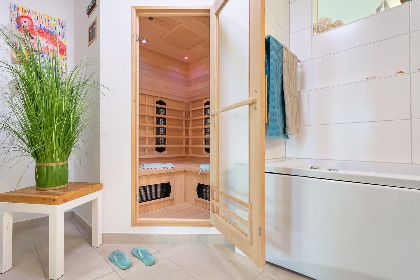 Hier finden Sie Entspannung zu jeder Jahreszeit, die Infrarot-Wärmekabine ausgestattet mit Hifi-Sound-System und LED-Farblichttherapie sowie einer Relax-Whirlwanne sorgen für Wohlfühlmomente bei jedem Wetter. Neben dieser Wellness-Ausstattung bietet die Ferienwohnung praktische Annehmlichkeiten wie einen Fahrradschuppen, einen PKW-Stellplatz direkt vor dem Haus und schnelles WLAN. Haustiere sind herzlich willkommen, sodass Sie Ihren Strandurlaub gemeinsam mit Ihrem vierbeinigen Freund genießen können.