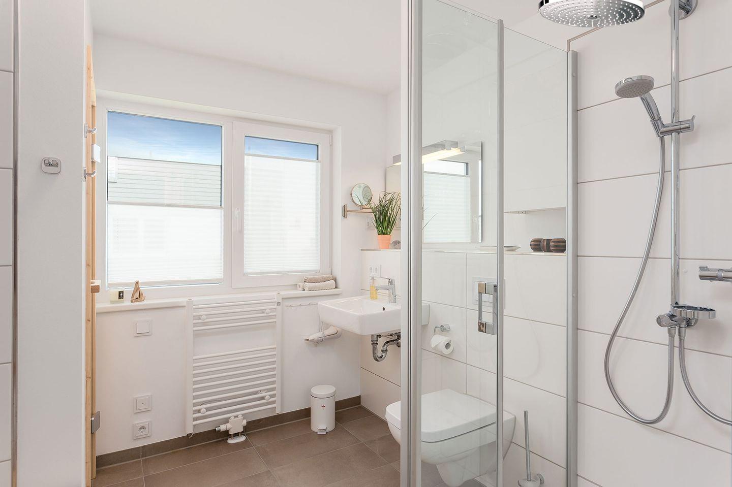 Erleben Sie private Entspannungsmomente in der finnischen Sauna mit Wasserblick oder relaxen Sie in Whirlwanne. Der Ruhebereich im ersten Obergeschoss umfasst zwei stilvolle Schlafzimmer, jedes ausgestattet mit TV und herrlicher Aussicht – das Hauptschlafzimmer sogar mit direktem Terrassenzugang und freiem Blick auf die Schlei.