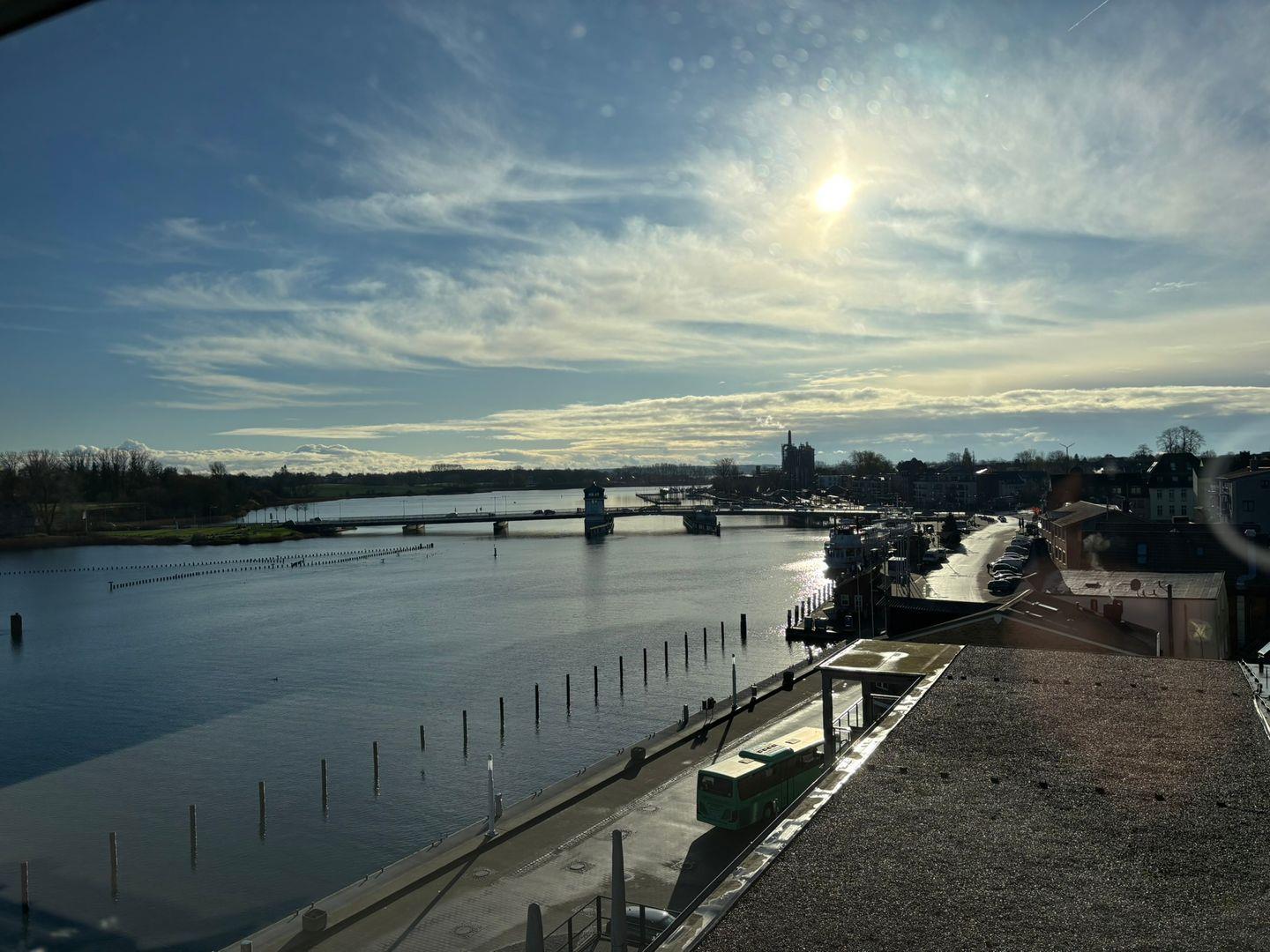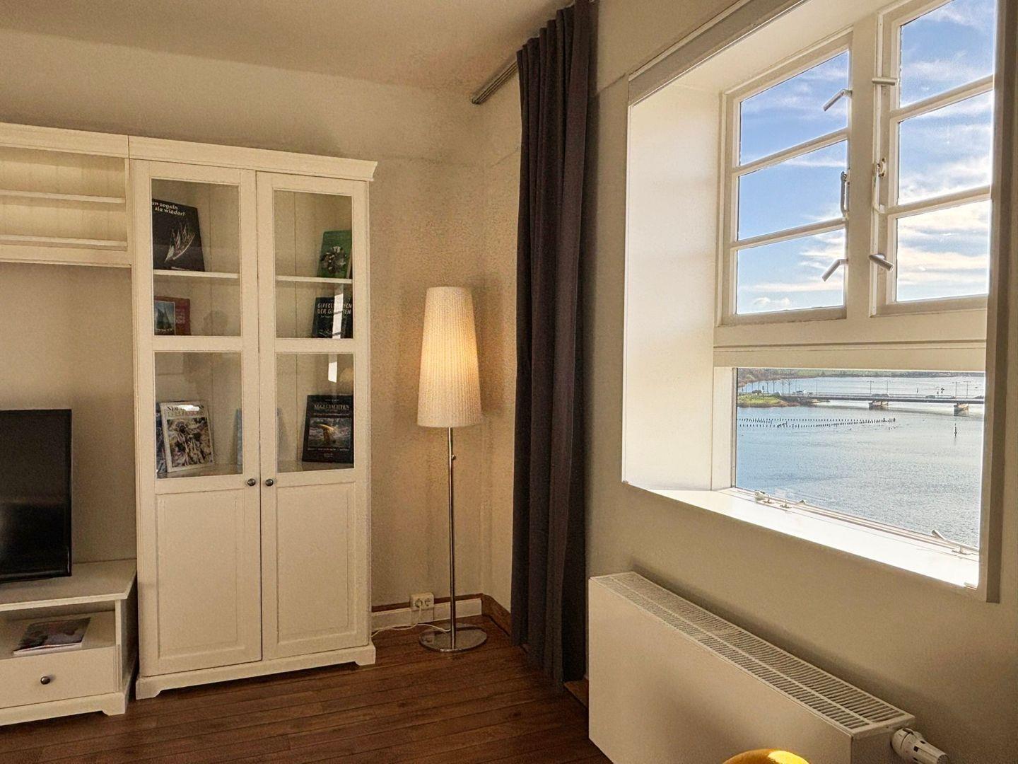 Modernes Ferienappartement Pier 14 direkt am Kappelner Hafen mit Blick auf Schlei und Schleibrücke.