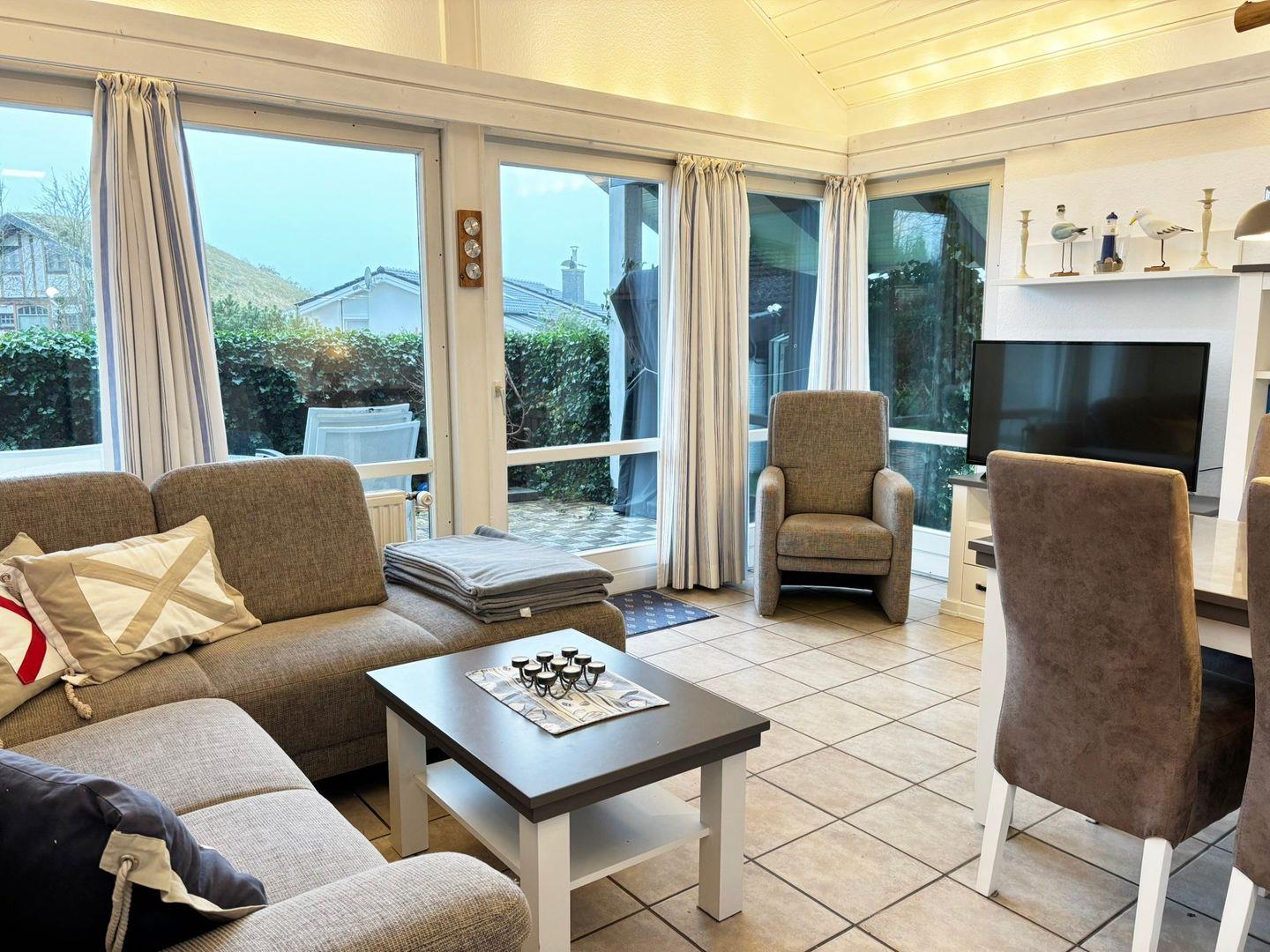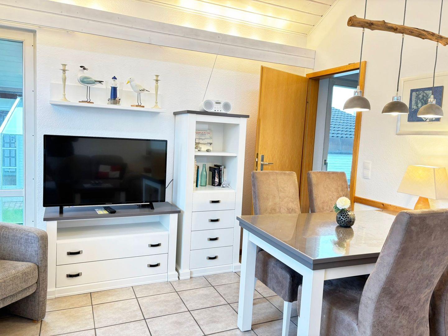 Für Unterhaltung sorgt in dem Haus zudem der große Fernseher, das WLAN und eine Auswahl an Büchern, Spielen und CDs. Auch praktische Annehmlichkeiten wie Waschmaschine, Trockner und Staubsauger sind vorhanden, sodass Ihr Aufenthalt so unkompliziert wie möglich verläuft.