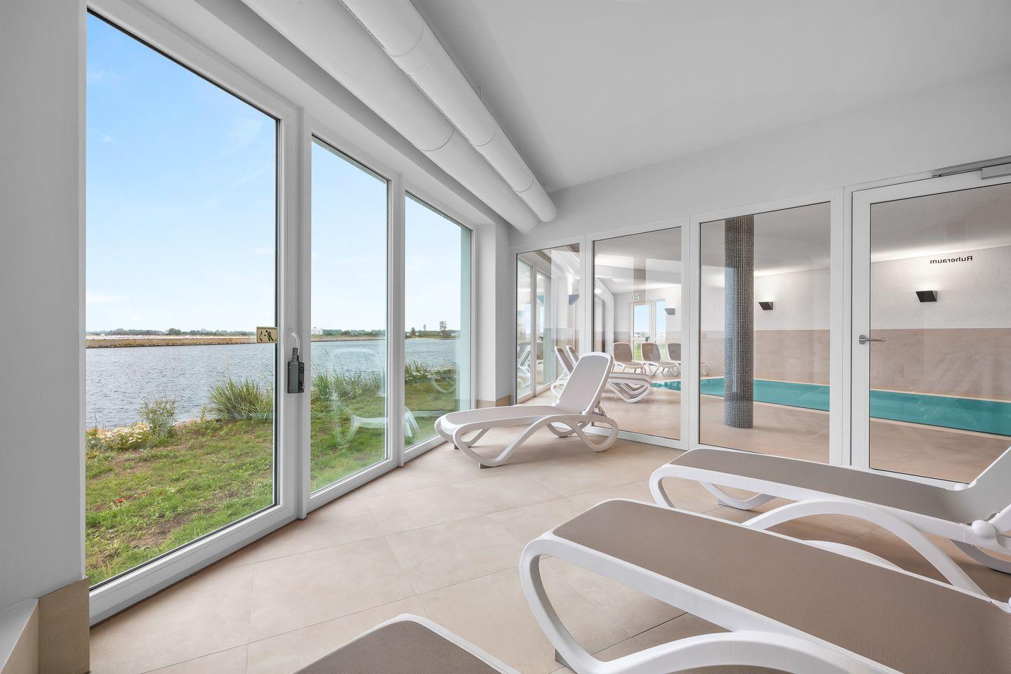 "Hafenspitze": Erdgeschosswohnung mit Ostseeblick, Terrasse & Wellnessbereich