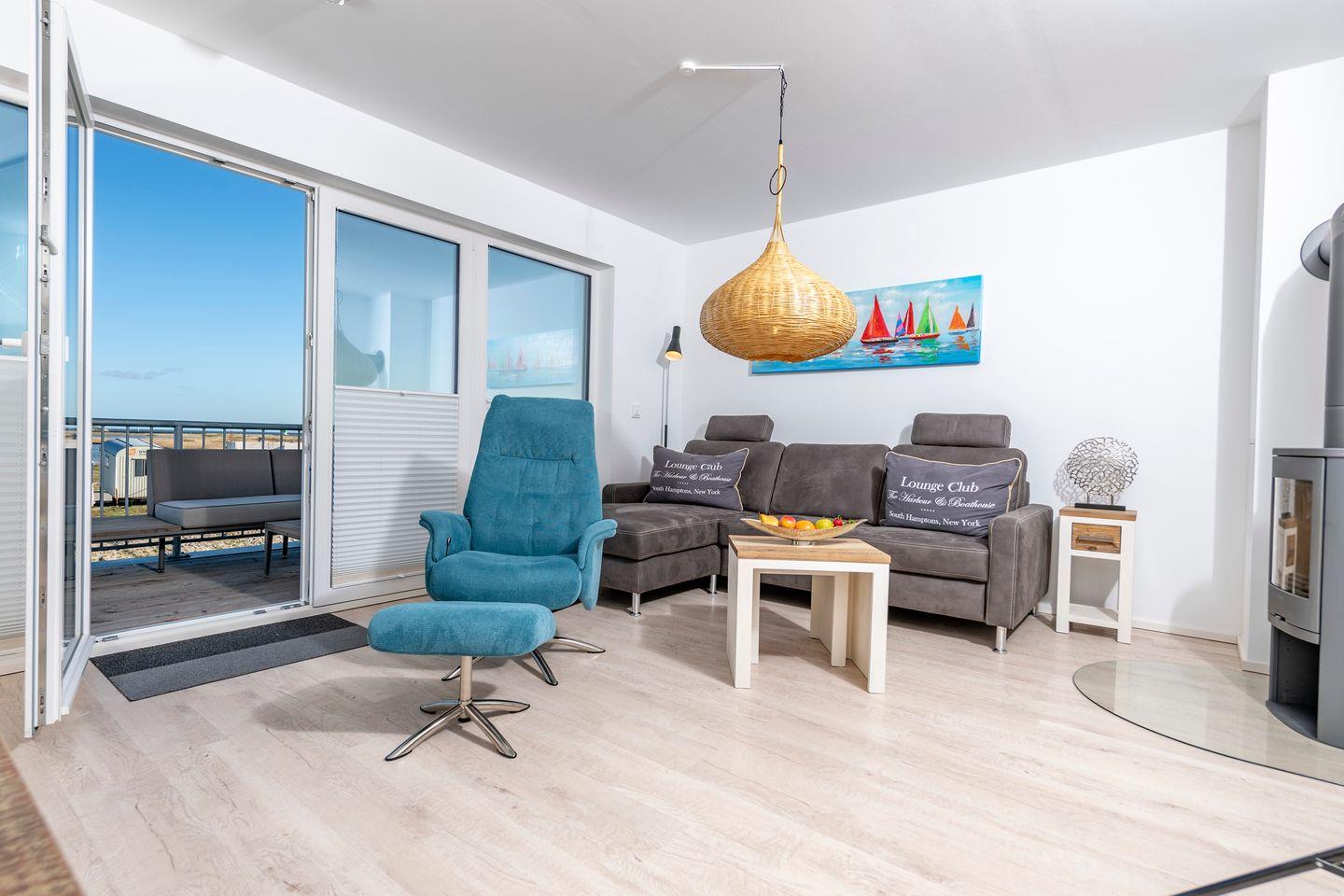 Moderne Ferienwohnung Baltic Side in Kappeln mit Meerblick, Balkon, Kamin und exklusiver Ausstattung für Familien und Erholung.