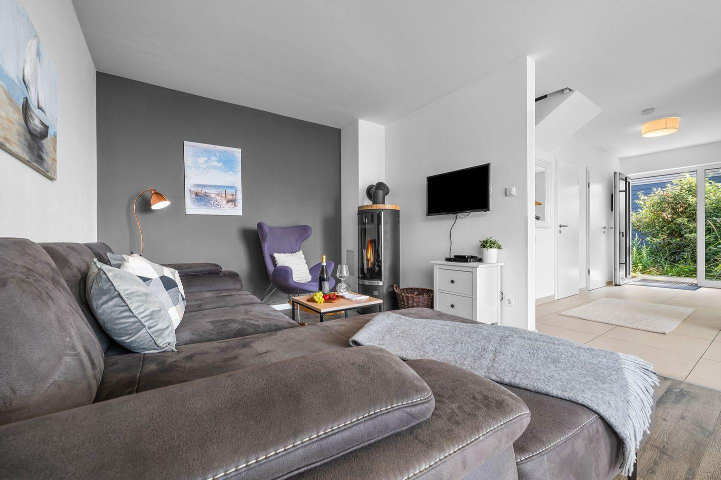 Ein Gäste-WC im Erdgeschoss sorgt für zusätzlichen Komfort – besonders praktisch, wenn Sie mit mehreren Personen reisen. Die Schlafcouch im Wohnbereich bietet eine zusätzliche, komfortable Übernachtungsmöglichkeit. Für den Alltag gibt’s alles, was Sie brauchen: eine Waschmaschine für Strandtücher, Fußbodenheizung für warme Füße an kühlen Tagen und kleine Extras wie Bügeleisen und Haartrockner. Auch an alles Praktische wurde gedacht: Ein eigener Parkplatz und ein abschließbarer Schuppen stehen Ihnen zur Verfügung.