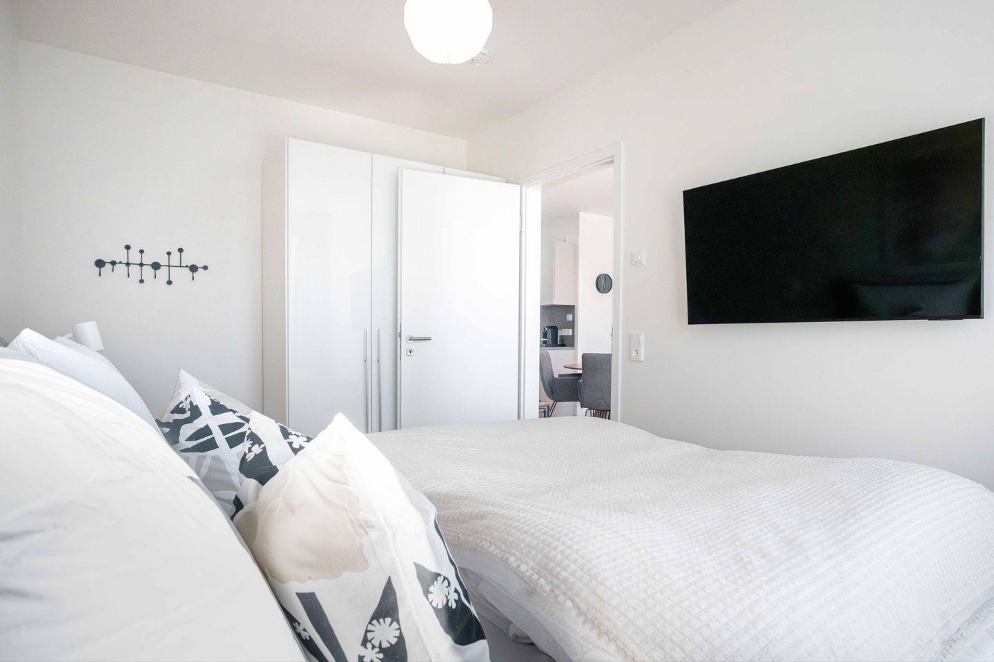 Ein Highlight der Wohnung ist der möblierte Balkon, auf dem ein Tisch mit vier Stühlen, ein Sonnenschirm und ein Elektrogrill bereitstehen – ideal für entspannte Stunden im Freien. Für Unterhaltung sorgen insgesamt drei Fernseher (je einer im Wohnzimmer und in den beiden Schlafzimmern), ein Radio sowie eine Spielesammlung. Die gesamte Wohnung ist mit Fußbodenheizung ausgestattet und alle Fenster verfügen über einen Sichtschutz. Zusätzlich stehen eine Waschmaschine, ein Bügeleisen, ein Bügelbrett, ein Wäscheständer und ein Staubsauger zur Verfügung. Ein eigener Stellplatz befindet sich direkt am Haus und ein Aufzug sorgt für komfortablen Zugang zur Wohnung. Ein Hund ist auf Anfrage willkommen.