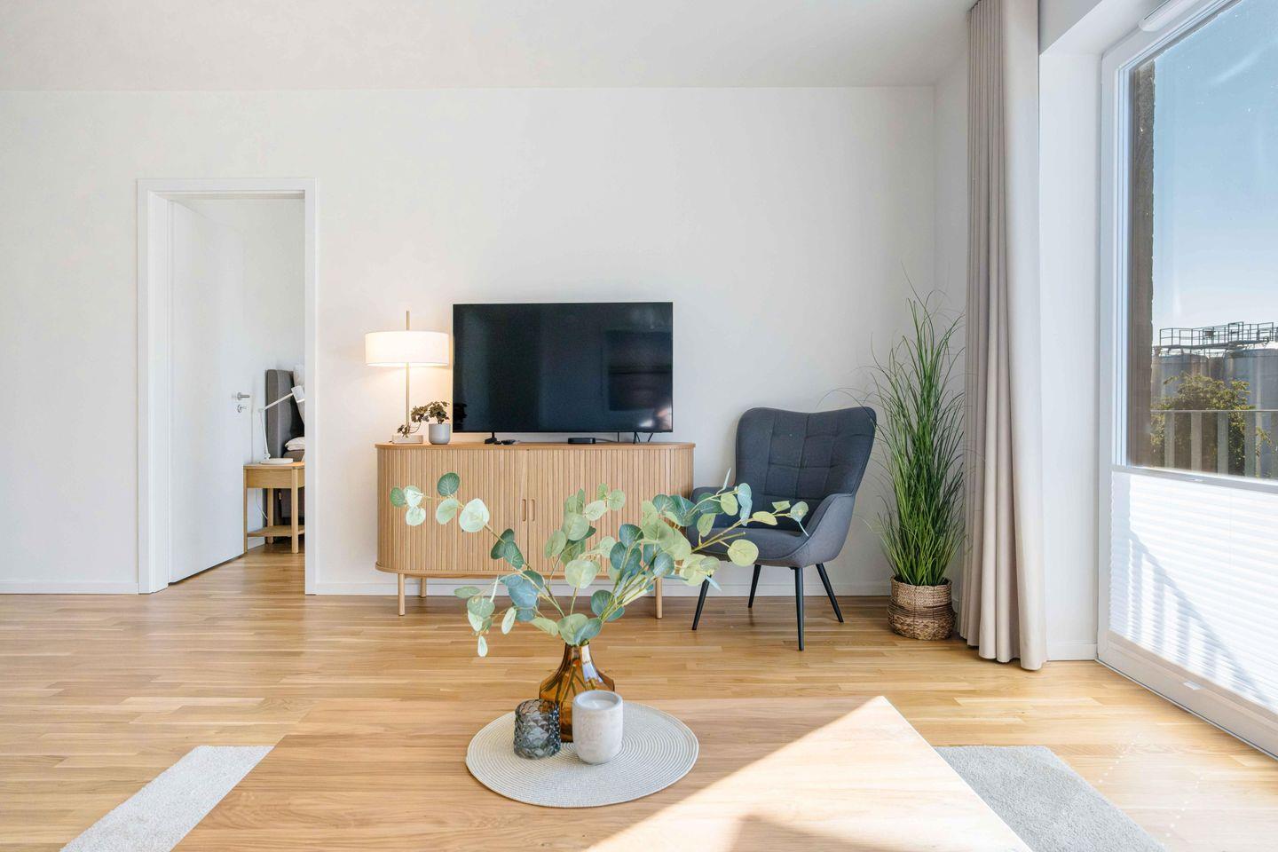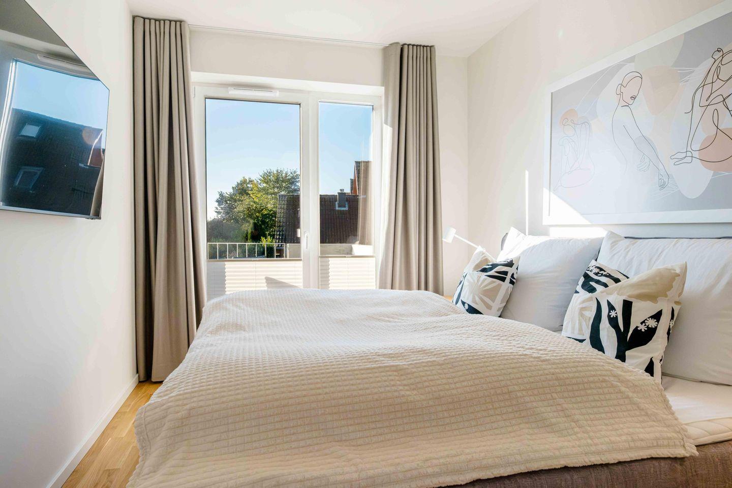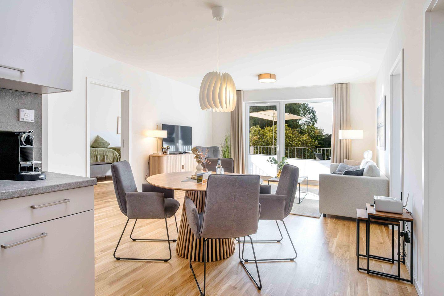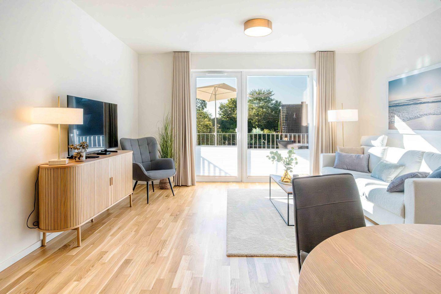 Moderne, barrierefreie Ferienwohnung Spinnaker im Kö8 in Kappeln mit Balkon, Fußbodenheizung und WLAN für bis zu vier Personen.