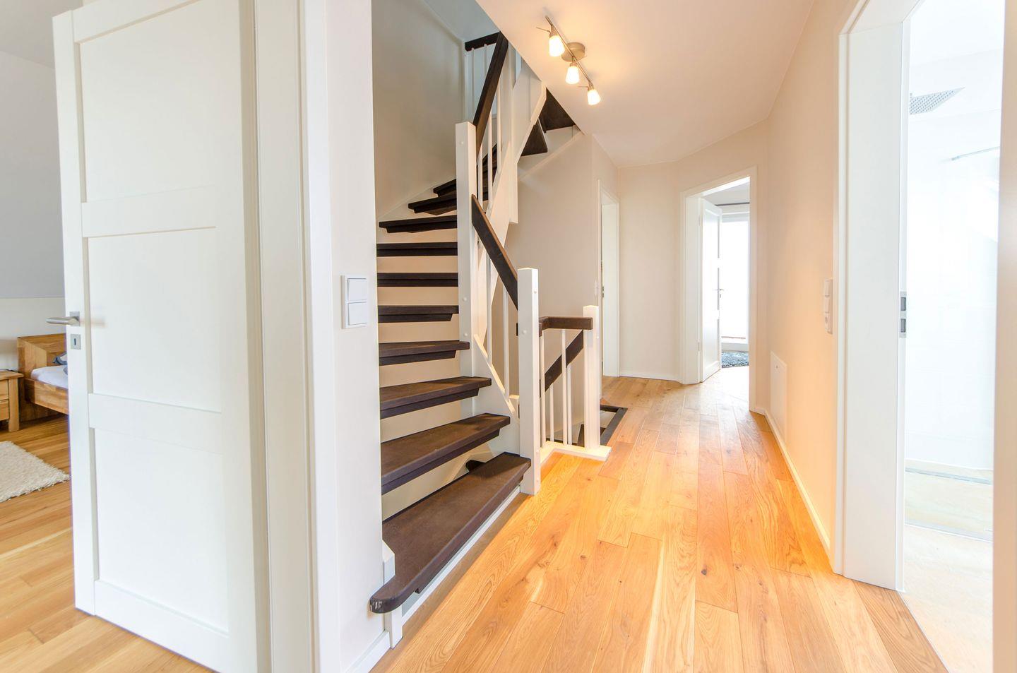 Die Ausstattung des Ferienhauses ist modern und familiengerecht konzipiert. Mit vier Schlafzimmern und insgesamt acht Schlafmöglichkeiten eignet sich das Haus hervorragend für Familien, befreundete Paare oder kleine Gruppen. Zwei Badezimmer, jeweils mit Dusche und Fenster ausgestattet, gewährleisten Komfort und Privatsphäre auch bei voller Belegung. Fußbodenheizung sorgt das ganze Jahr über für angenehme Temperaturen, und das allergikergeeignete Haus bietet ein optimales Raumklima für empfindliche Gäste.