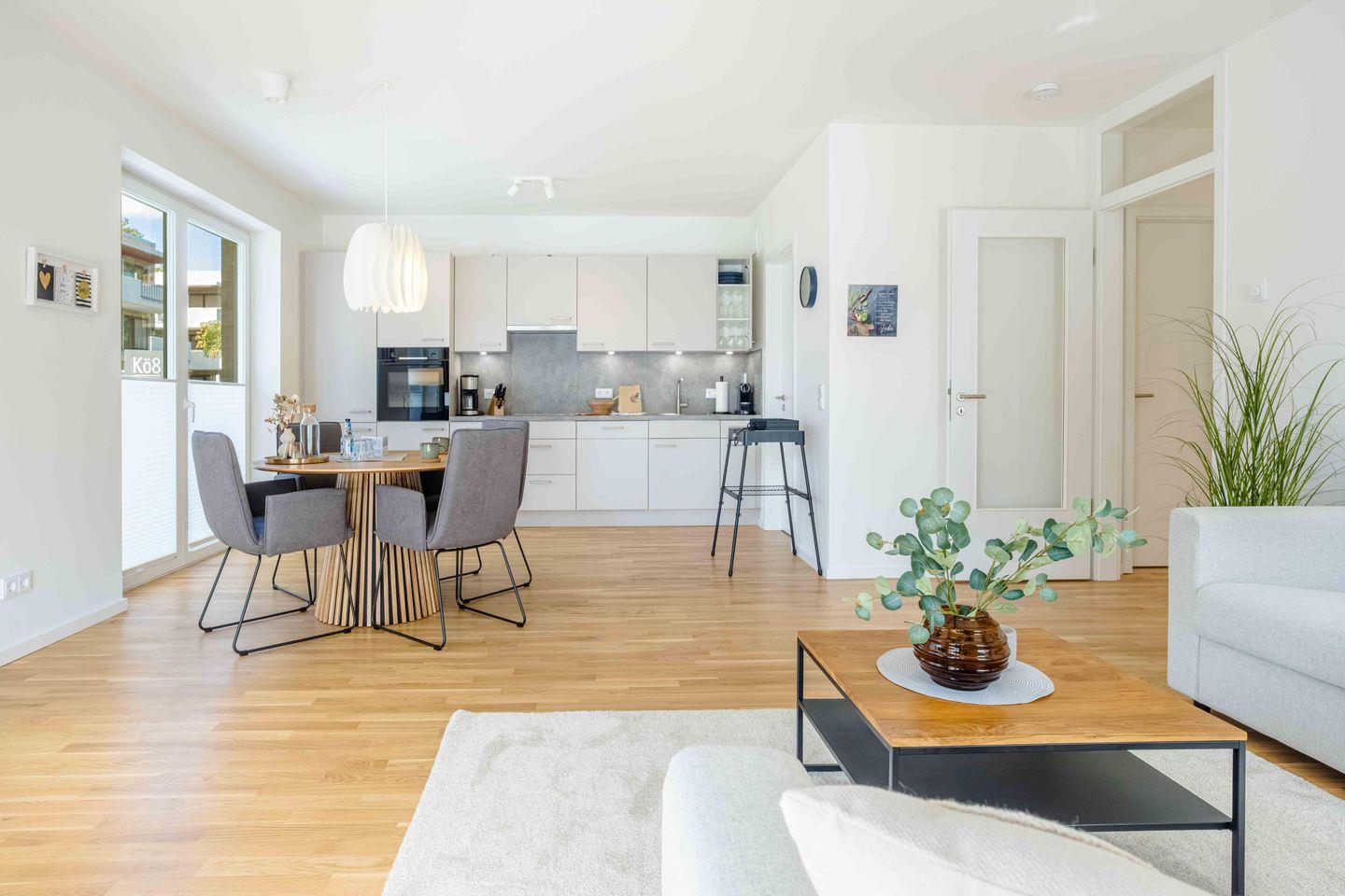 Die stilvoll eingerichtete Ferienwohnung Seeschwalbe im Kö8 bietet auf großzügigen 91 m² ausreichend Platz für bis zu 4 Personen und überzeugt mit durchdachtem Komfort und modernem Design. Die Wohnung befindet sich im Erdgeschoss eines ruhigen Ferienkomplexes und verfügt über einen privaten Stellplatz direkt am Objekt. Es handelt sich um ein Nichtraucher-Objekt, wobei ein Hund auf Anfrage willkommen ist.