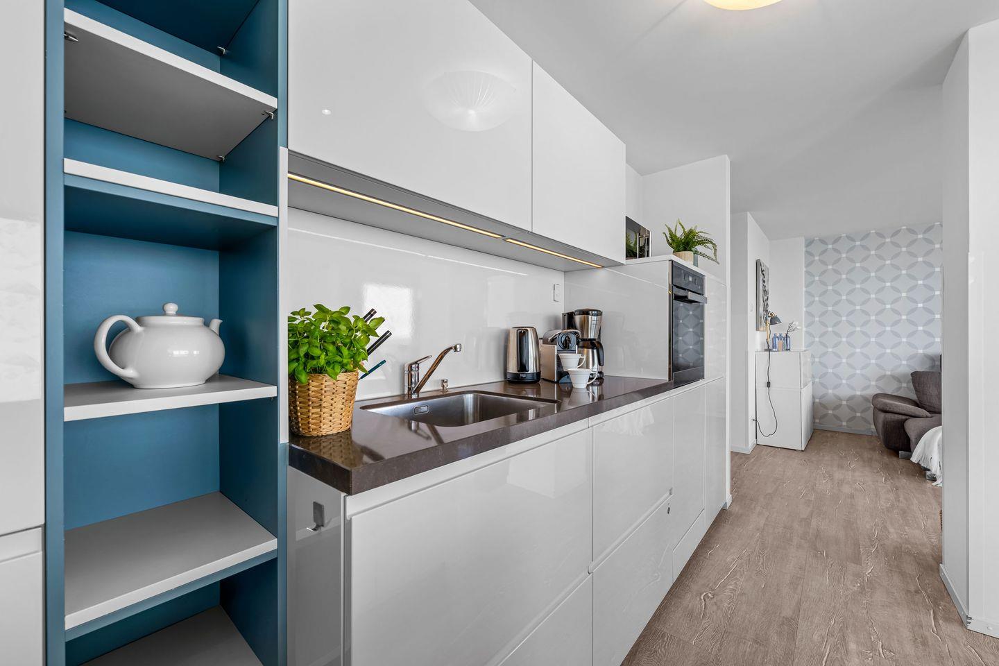 Zwei Balkone, Gartenmöbel, Elektrogrill, Liegestühle und ein unvergleichlicher Blick auf Wasser und Himmel machen Küstenküche zum Wohlfühlort. Die Badebucht im Ostseeresort Olpenitz ist weniger als 200 Meter entfernt, Restaurants, Miniladen, Spielplatz, Fahrradverleih und Wassersportangebote sind im Resort fußläufig erreichbar.