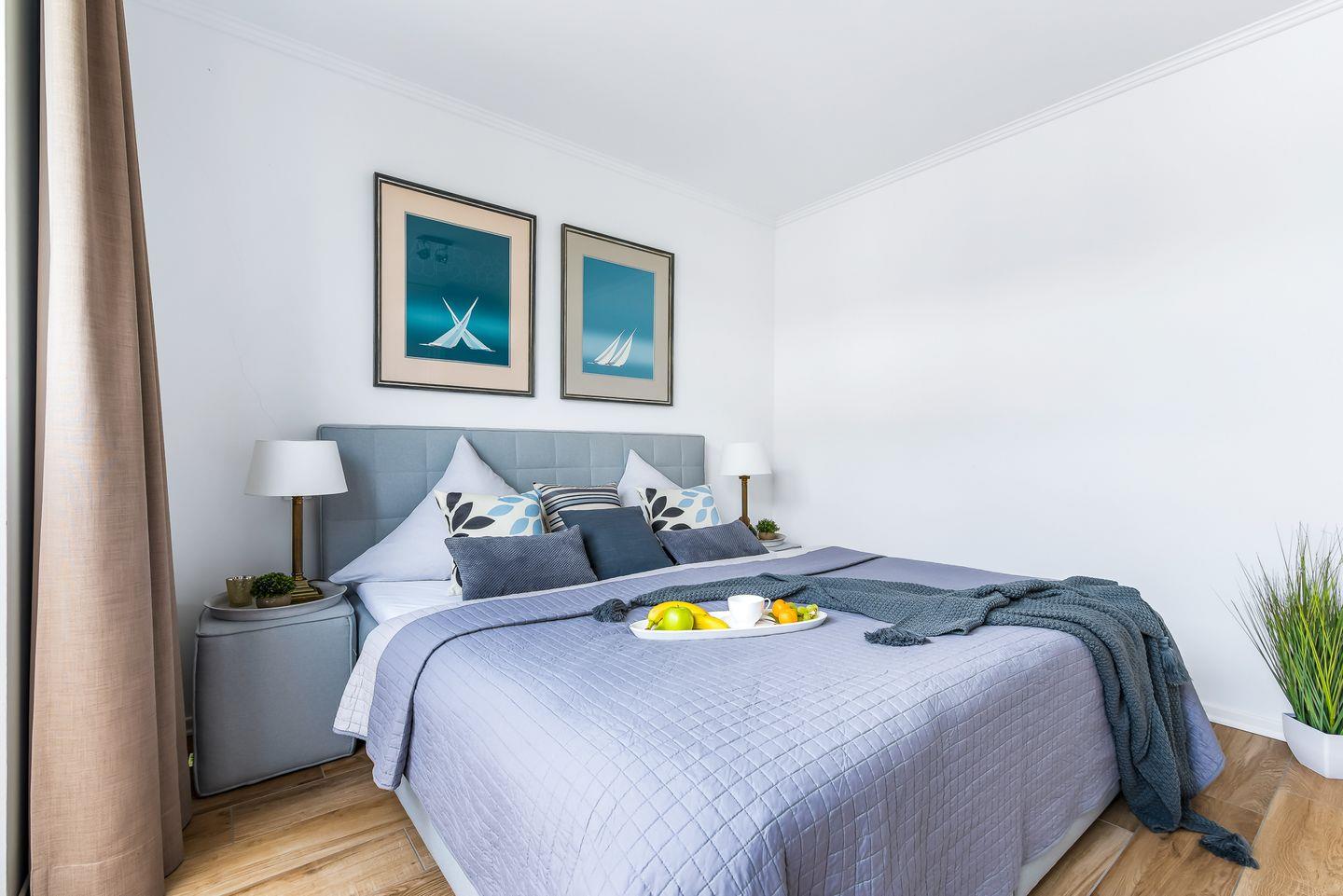 Sie öffnen die Terrassentür, hören die Wellen, riechen das Salz in der Luft. Die Möwen kreisen über dem Hafen, während das Licht durch die großen Fenster ins Wohnzimmer fällt. Maritimer Stil, helle Farben und natürliche Materialien machen aus dem Wohnbereich Ihr neues Lieblingszimmer.