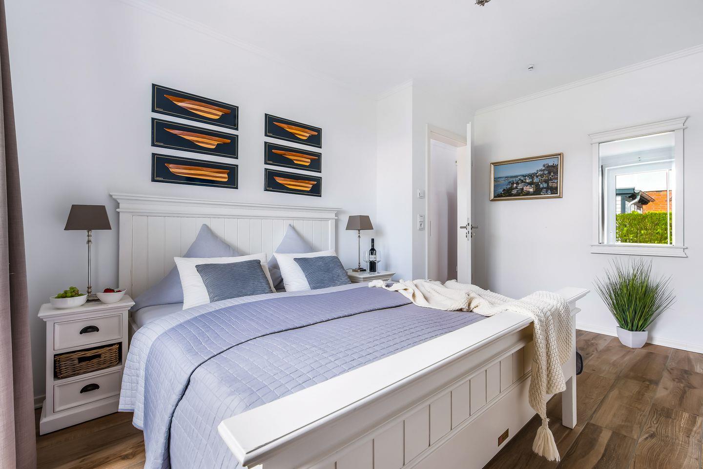 In den Schlafzimmern erwarten Sie weiche Kissen, viel Ruhe und das beruhigende Gefühl, der Küste ganz nah zu sein. Jedes Zimmer ist mit einem Doppelbett ausgestattet und im schlichten Strandhausstil gehalten. Hier schlafen Sie tief und träumen weit.