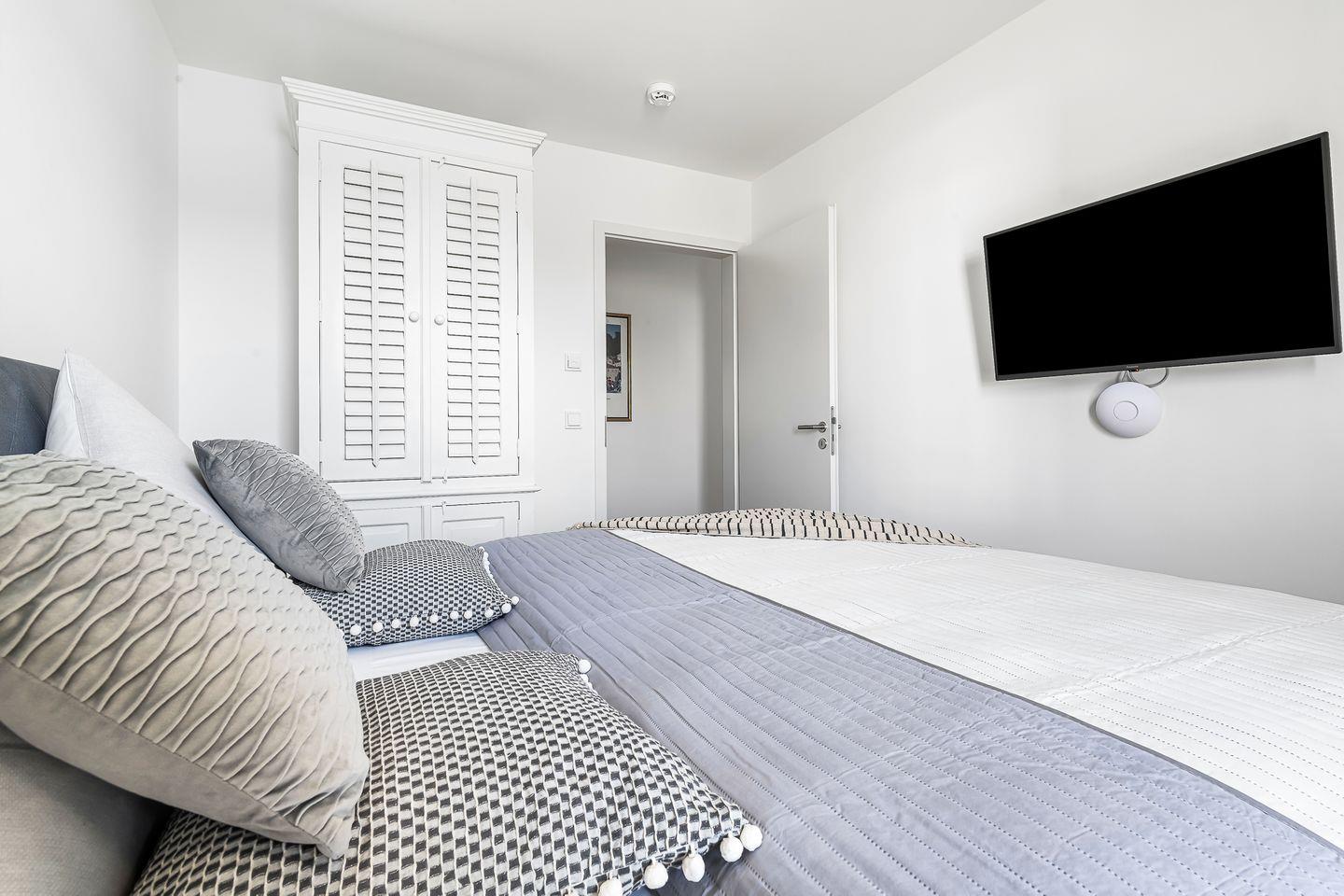 Beide Schlafzimmer verfügen über bequeme Doppelbetten. Eines ist zusätzlich mit einem Fernseher ausgestattet. Die Räume bieten viel Stauraum und große Fenster mit Blick ins Freie. Perfekt, um sich zurückzuziehen und zur Ruhe zu kommen.