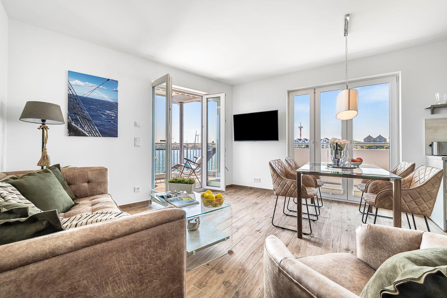 Moderne Ferienwohnung Admirals Cabin mit Hafenblick und Infrarotkabine im Ostseeresort Olpenitz.