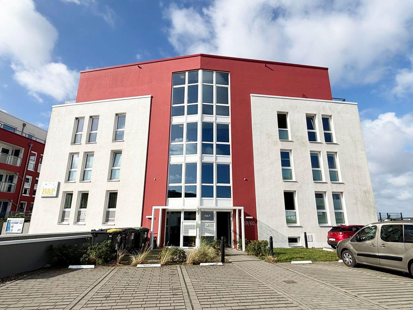 Ostseeblick-Bollwark Whg. 9, am Wasser gelegen gleich im 1. Stock mit Aufzug für bis zu 4 Personen. Auf 56 m² erwarten Sie 1 Schlafzimmer, ein Wohnbereich mit offener Küche sowie ein überdachter Balkon mit gutem Meerblick. Strand und Meer liegen direkt vor der Tür, der Sandstrand ist nur 300 m entfernt. Mit WLAN, Sauna, Infrarotkabine, beheiztem Indoor-Pool und kostenlosem Privatparkplatz.