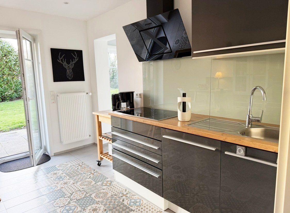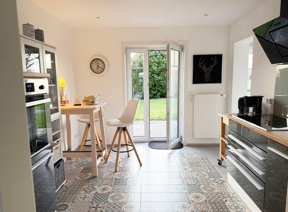 Das Herzstück des Hauses ist der großzügige Wohnbereich mit gemütlichem Sofa und Sessel, der zum Entspannen einlädt – ob bei einem Buch, einem Spiel oder einem entspannten Fernsehabend. Die separate, voll ausgestattete Küche lässt für Hobbyköche keine Wünsche offen: Neben Cerankochfeld, Backofen und Spülmaschine stehen Ihnen auch eine Nespresso-Maschine sowie eine klassische Filterkaffeemaschine zur Verfügung. Am gemeinsamen Esstisch genießen Sie Ihre Mahlzeiten in geselliger Runde.