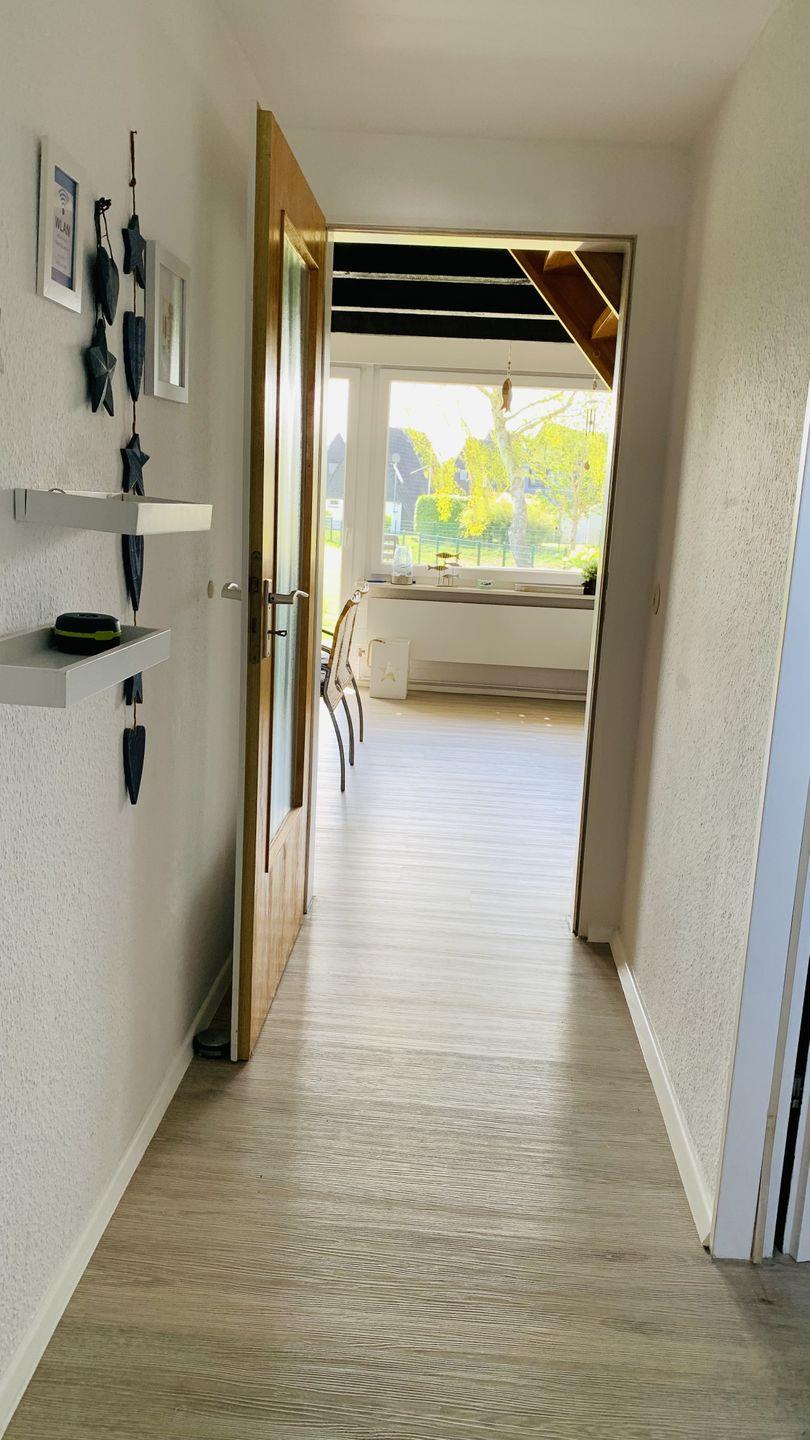 Direkt in der Nähe zum Schleiufer. Mit Balkon und Terrasse zum Garten. Geeignet für bis zu 4 Personen.