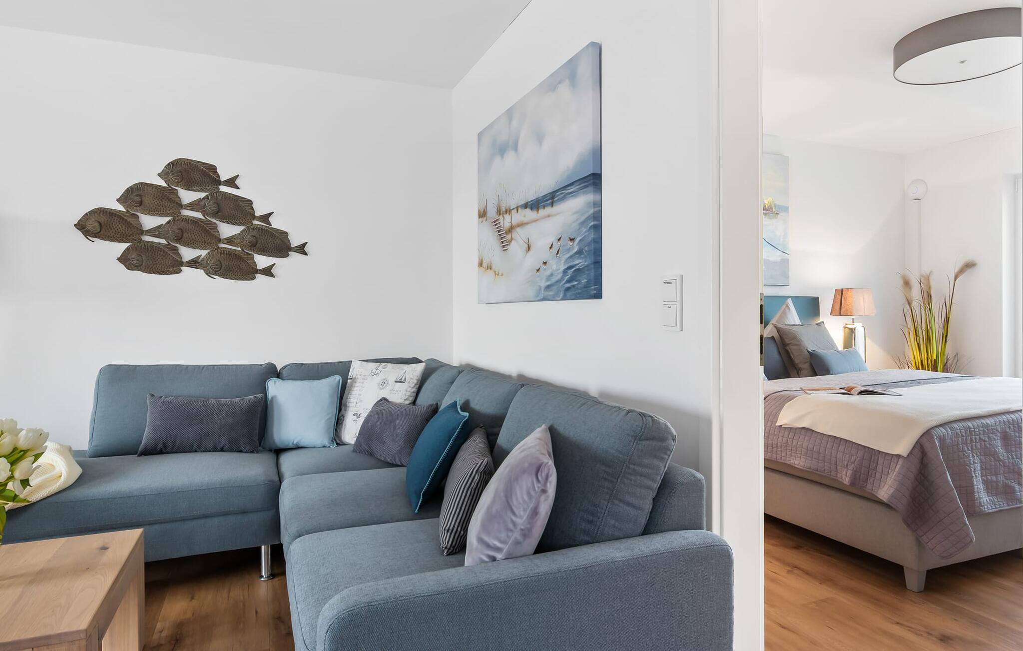 Unser Lieblingsplatz: Einfach mal im Bett bleiben und KAPTAIN'S STRANDHUUS genießen.