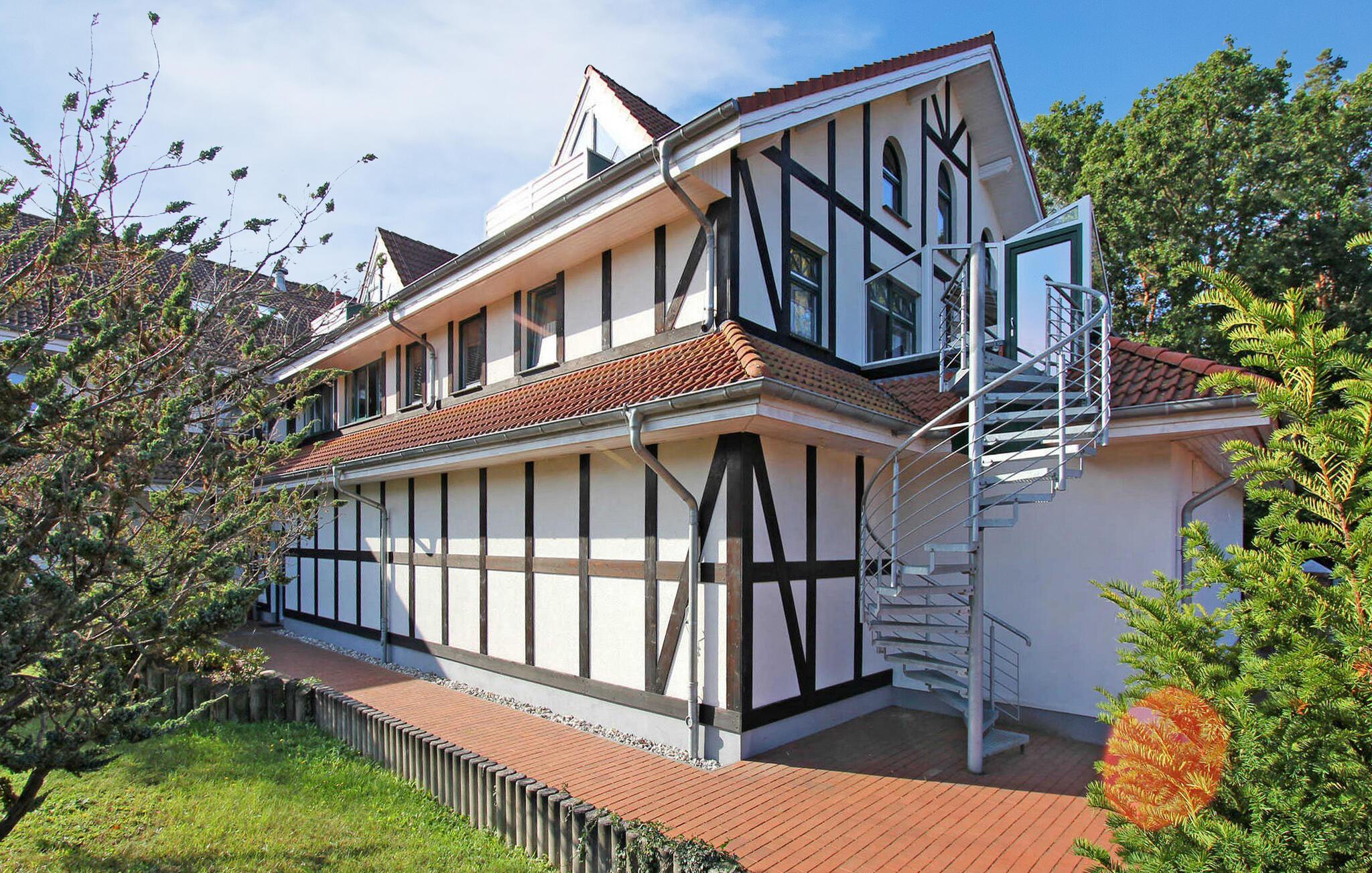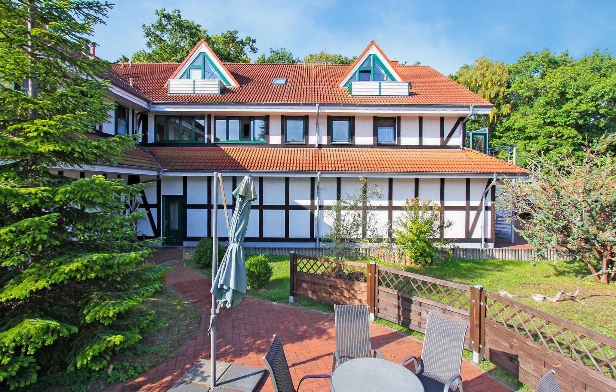 Die fünf Ferienwohnungen befinden sich im Obergeschoss eines Wohn- u. Geschäftshauses in zentraler Ortslage, ca. 500 m vom Ostseestrand entfernt. Im Gebäude befinden sich ein Restaurant, eine Drogerie und ein Souvenirgeschäft. Der Zugang zu den Wohnungen, PKW-Stellplätze, Fahrradabstellraum und eine zentrale Sitzecke im Freien mit Sitzmöbeln und Grill steht den Urlaubsgästen auf einem separaten und abgegrenzten Bereich zur Verfügung.