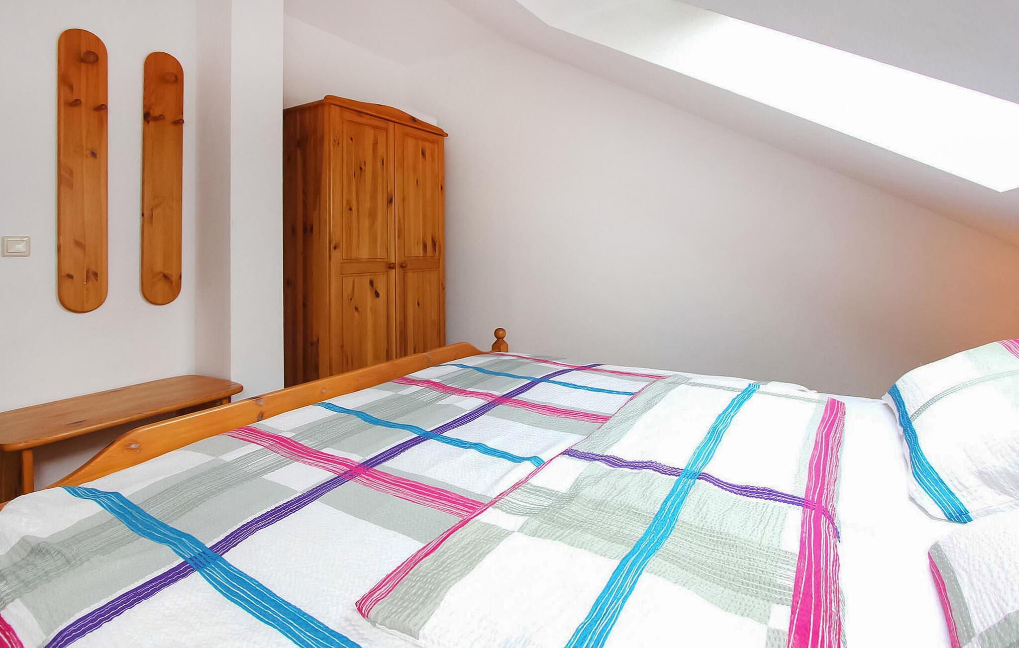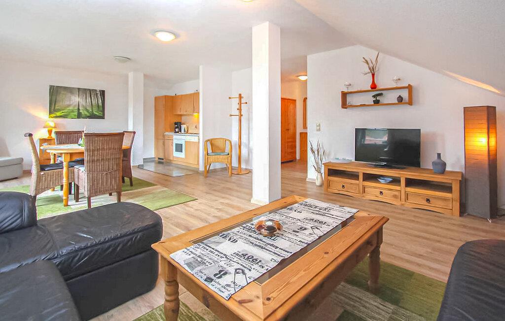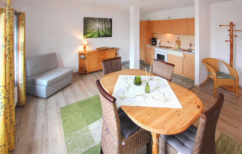 Diese Wohnung hat eine Größe von ca. 50 qm und ist für eine Belegung bis 4 Pers. geeignet. Sie verfügt über einen Wohnraum (Polster-Sitzecke inkl. Schlafcouch, Essplatz, TV, Radio), Küchenzeile mit E-Herd, Schlafraum (Doppelbett, Rollbett), DU/WC, Zentralheizung.