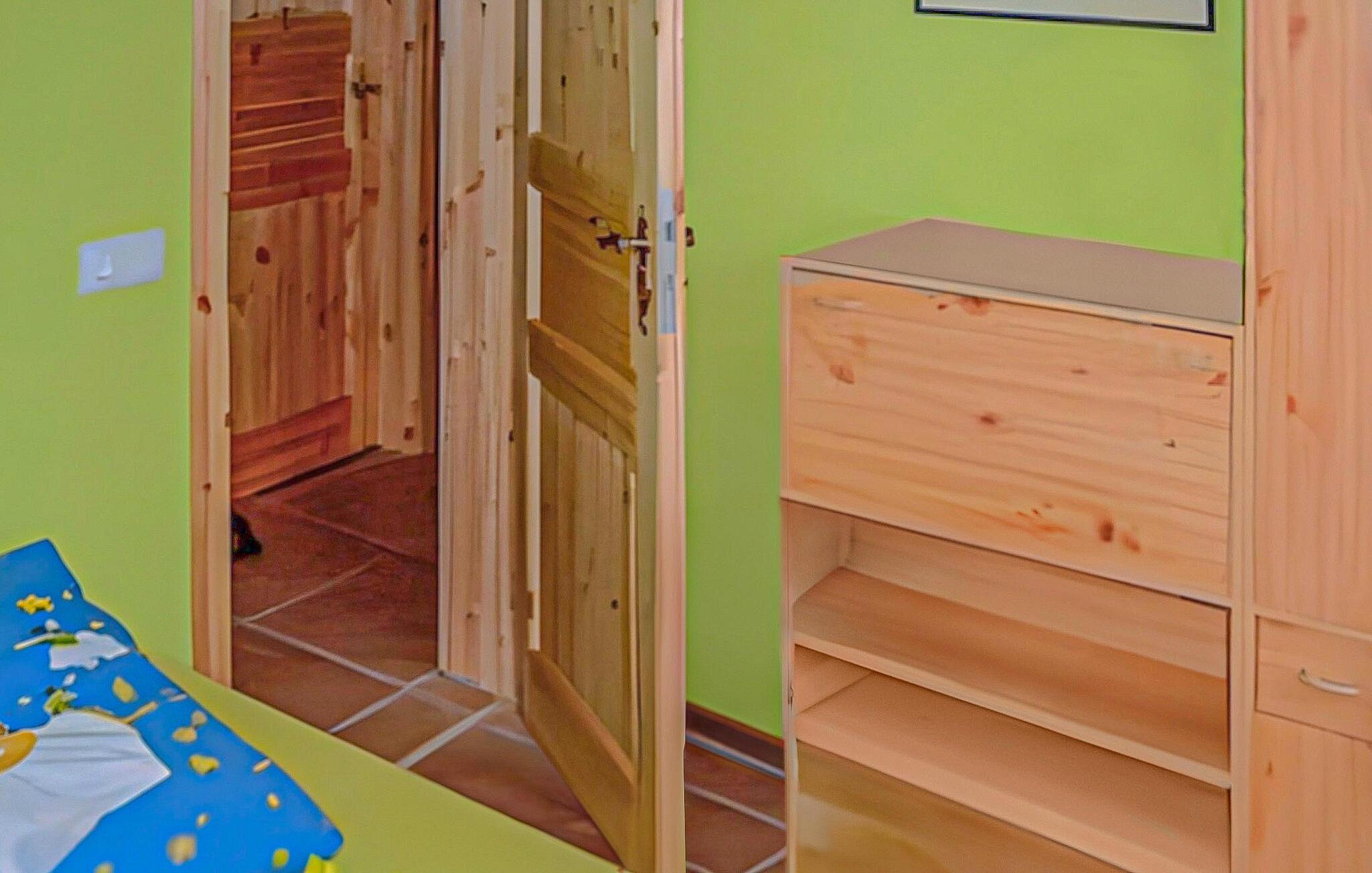 Diese eine von zwei komfortablen Ferienwohnungen befindet sich in einem 2009 neu erbauten Ferienhaus auf einem 500 qm großen Erholungsgrundstück in ruhiger Ortsrandlage. Ihre Ferienwohnung mit einer Größe von 50 Quadratmetern befindet sich im Erdgeschoss. Sie verfügt über eine Terrasse und ist ausgestattet mit einem Wohn-/Esszimmer (Polstermöbel inkl. Schlafcouch, Essecke, Sat-TV, Radio, Kamin), kompletter Küchenzeile mit Elektroherd, Mikrowelle und Geschirrspüler, 2 Schlafzimmern (je 1 Doppelbett, extra Reisebett), Dusche/WC und Zentralheizung. Grillplatz, Kinderspielplatz und Parkplatz sind ebenfalls vorhanden. Im Gesamtpreis sind Bettwäsche, Wasser, Energieverbrauch und Endreinigung enthalten.