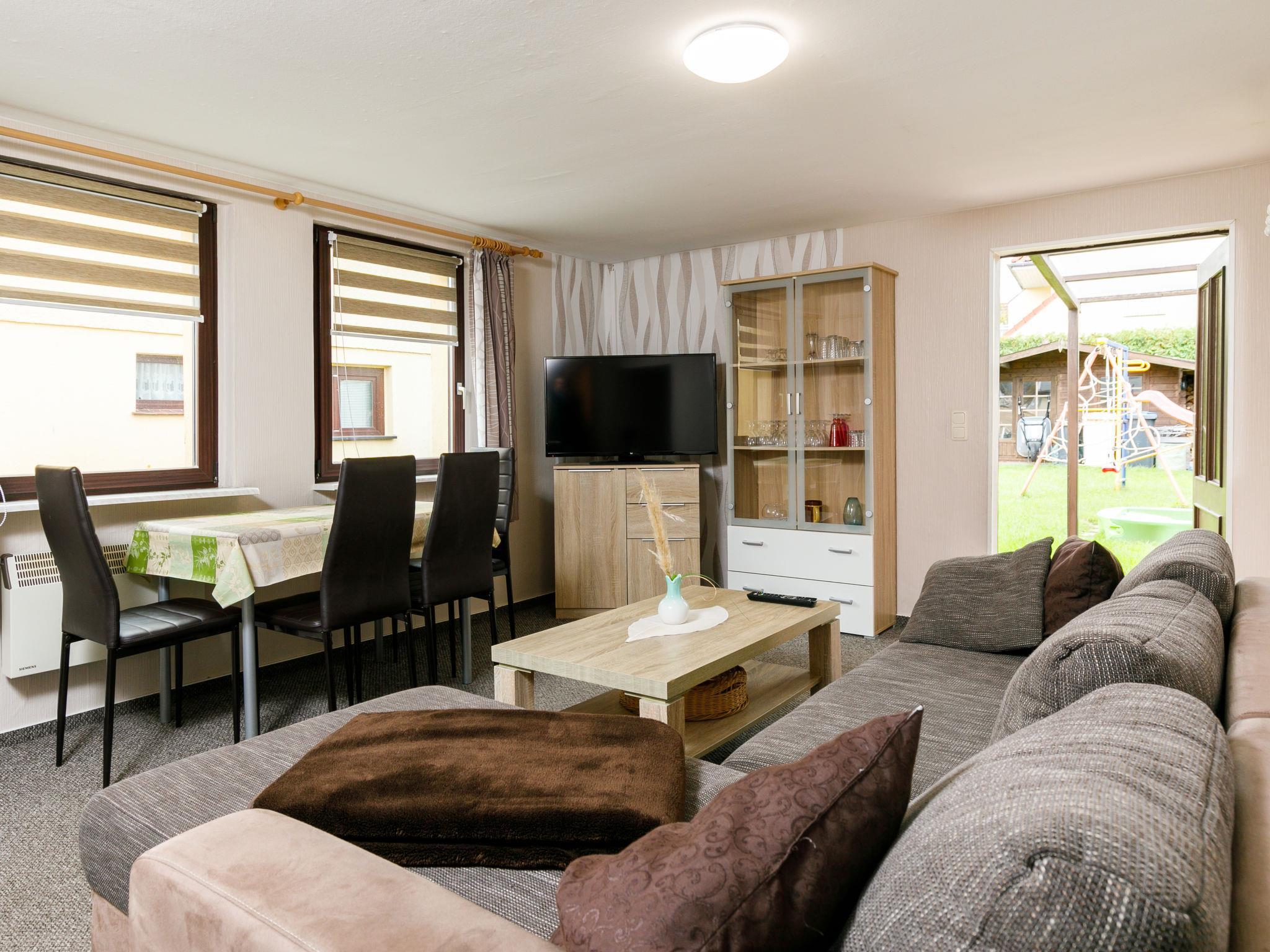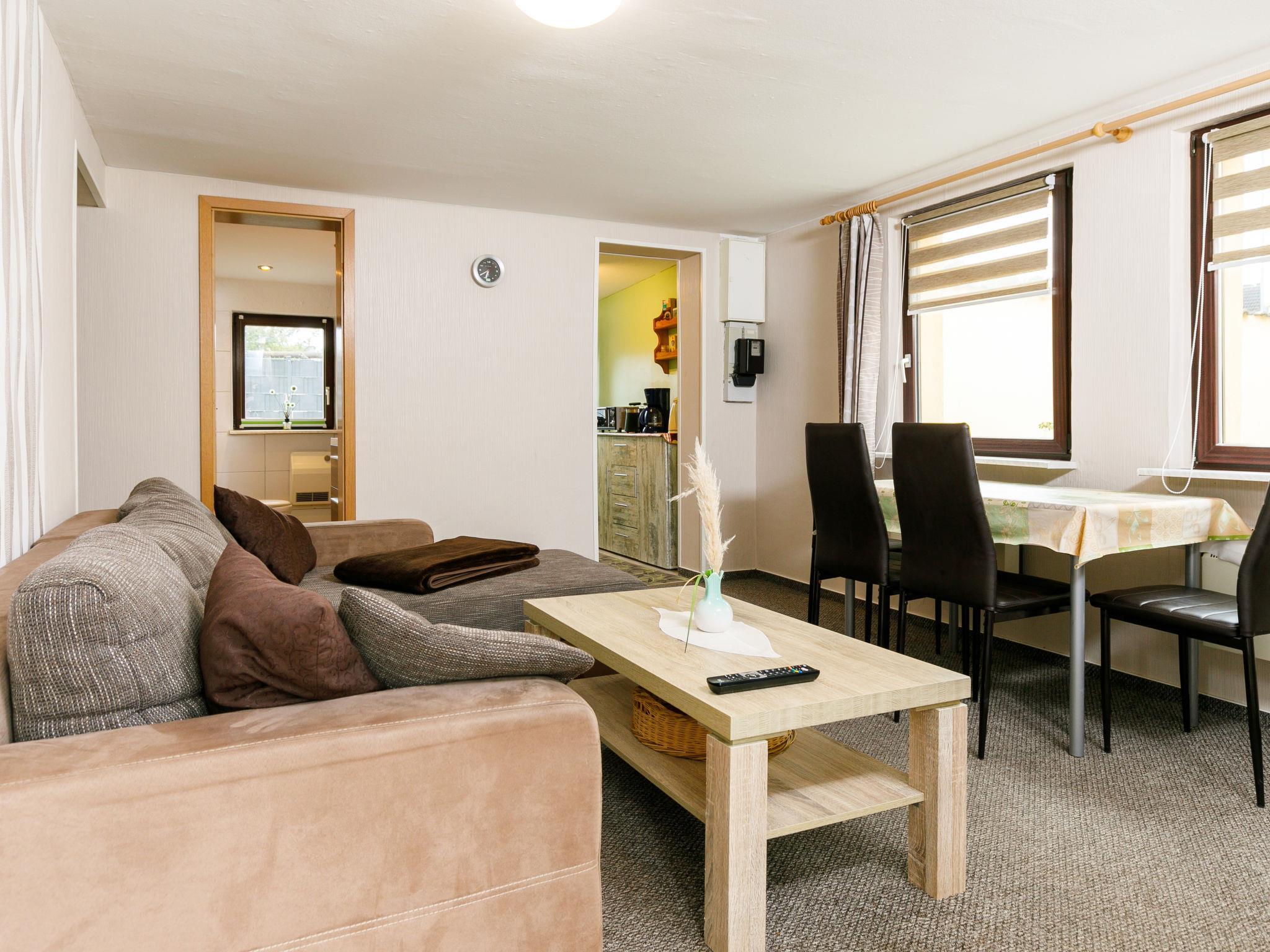 3-Zimmer-Bungalow 50 m2, im Erdgeschoss. Gemütlich eingerichtet: Wohn-/Esszimmer mit Kabel-TV (Flachbildschirm), Radio. Ausgang zur Terrasse. 1 Zimmer mit 1 Doppelbett. 1 Zimmer mit 2 Betten. Kleine Kochnische (2 Kochplatten, Toaster, Wasserkocher, elektrische Kaffeemaschine). Dusche/WC. E-Heizung. Terrasse. Terrassenmöbel. Zur Verfügung: Kinderhochstuhl, Babybett. Parkplatz (1 Auto) beim Haus. Bitte beachten: Nichtraucher-Unterkunft. Rauchmelder.