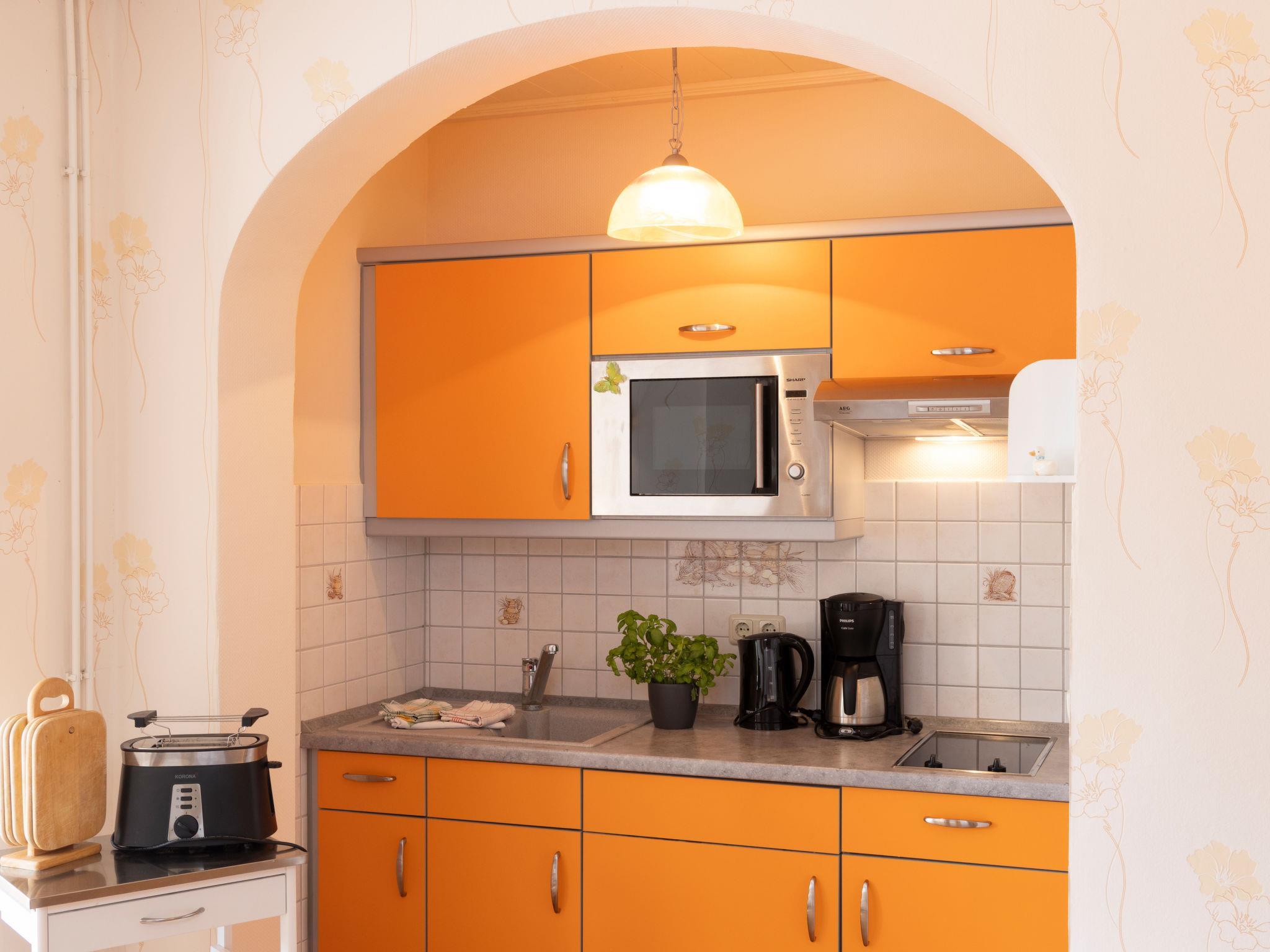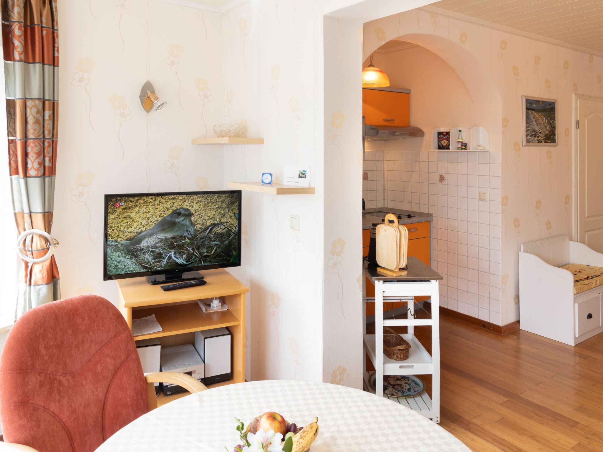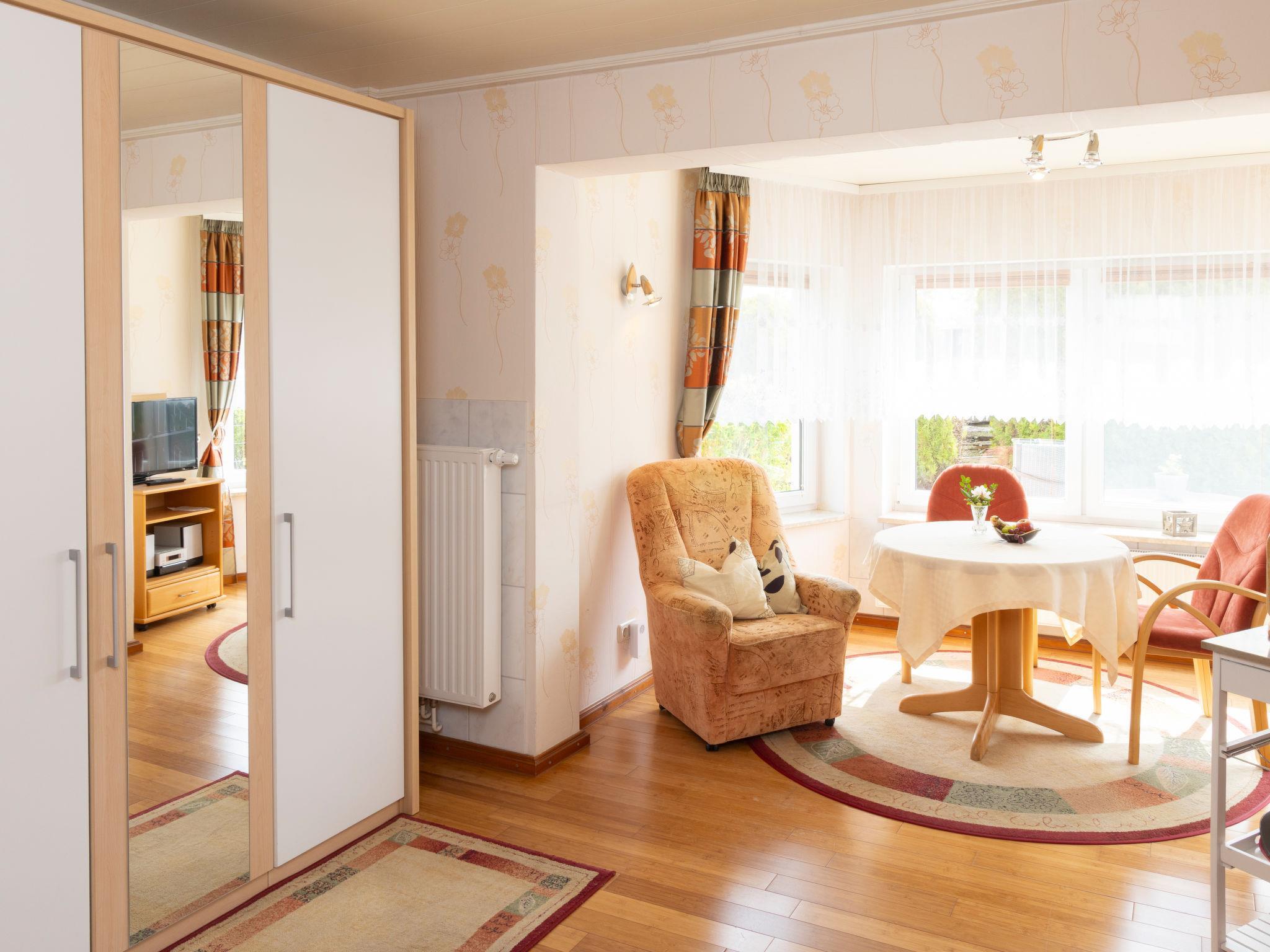 "Hummel", 1-Zimmer-Wohnung 33 m2, im Erdgeschoss. Objekt geeignet für 2 Erwachsene. Sehr gemütlich eingerichtet: offenes Wohn-/Schlafzimmer mit 1 Doppelbett (180 cm, Länge 200 cm), Sat-TV und Radio. Kochnische (2 Kochplatten, Toaster, Wasserkocher, Mikrowelle, elektrische Kaffeemaschine) mit Esstisch. Dusche/WC. Terrasse. Terrassenmöbel. Zur Verfügung: Kinderhochstuhl, Babybett bis 3 Jahre, Haartrockner. Internet (WLAN, gratis). Parkplatz. Bitte beachten: geeignet für Familien. Nichtraucher-Unterkunft. Rauchmelder.