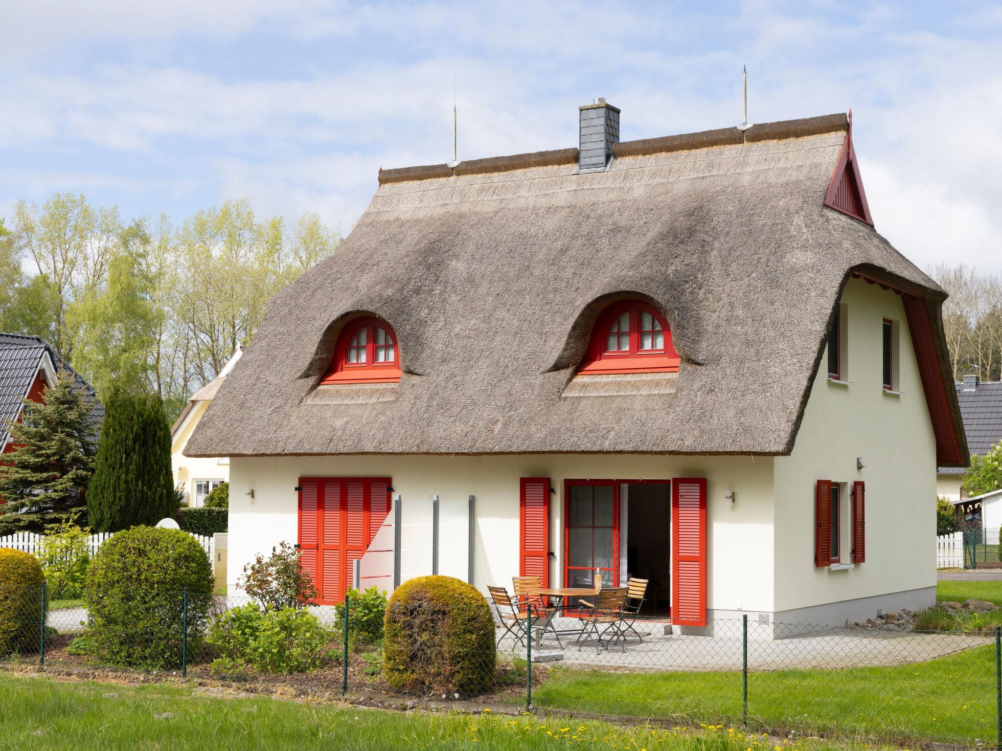 Schönes, reetgedeckte Doppelhaus "Heide", umgeben von Bäumen und Feldern. 1.5 km vom Zentrum von Karlshagen, am Ortsrand, 8 km vom Zentrum von Wolgast, 10 km vom Zentrum von Zinnowitz, 1.5 km vom Meer. Zur Mitbenutzung: Grundstück 800 m2 (eingezäunt) mit Rasen. Terrasse, Gartenmöbel, Grill. Im Hause: Sauna (extra). Einstellraum für Fahrräder. Supermarkt 500 m, Restaurant 250 m, Bushaltestelle 150 m, Sandstrand 1.2 km, Hallenbad 10 km. Sauna und Fahrradeinstellraum befinden sich im Garten.