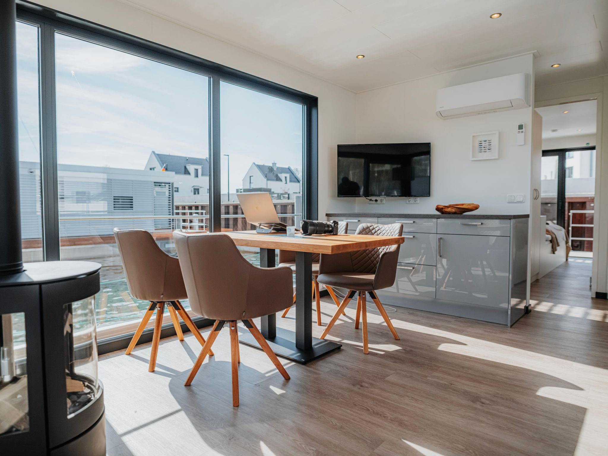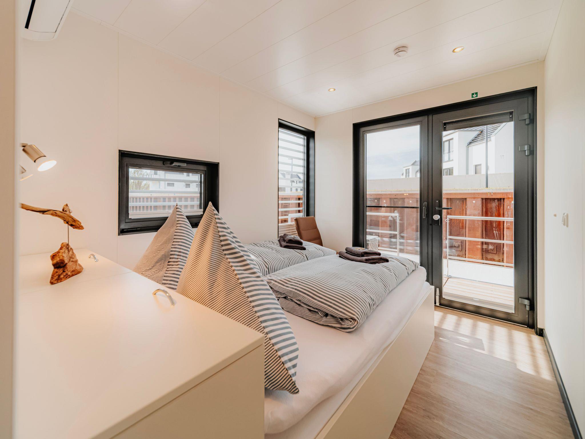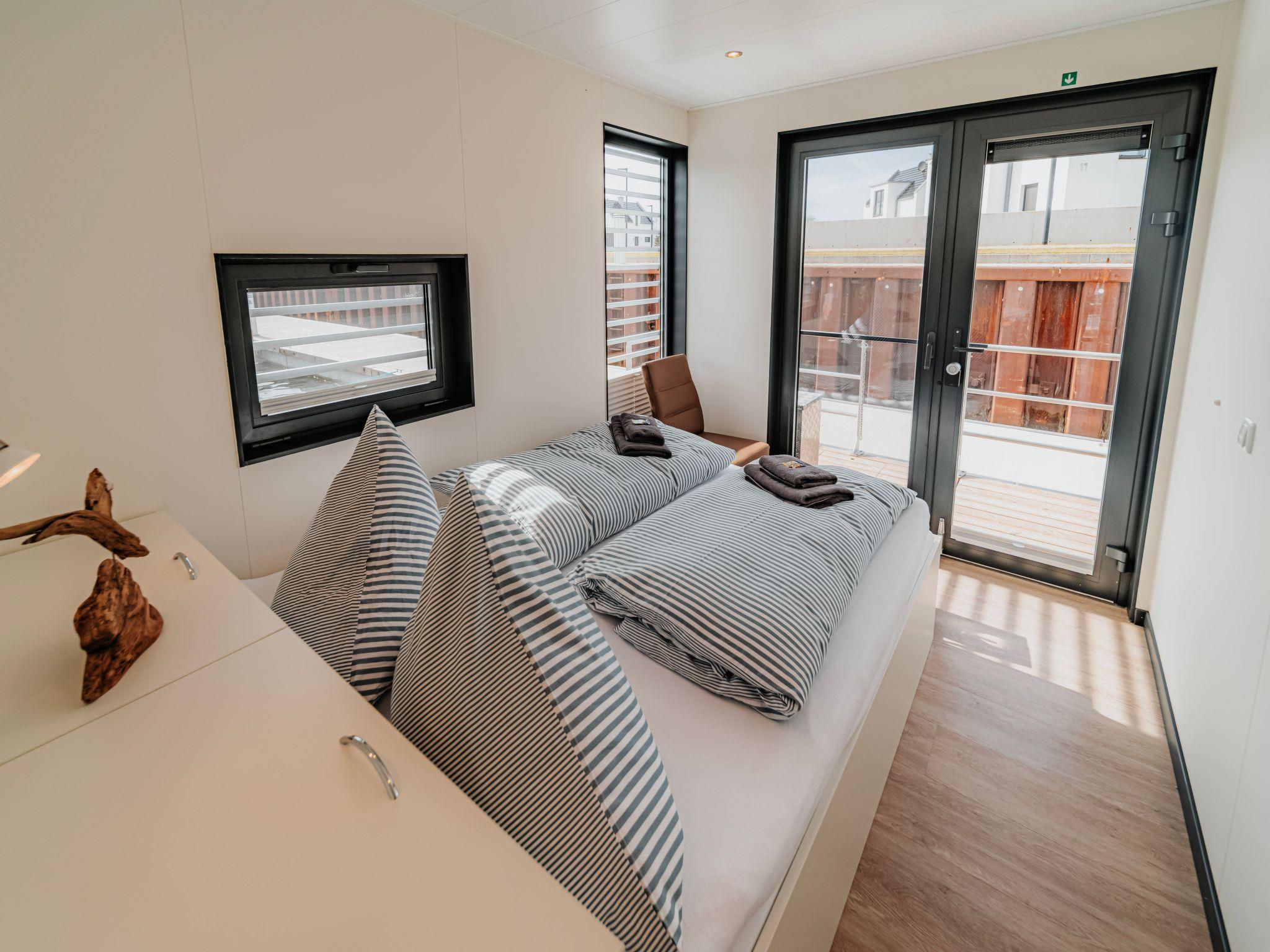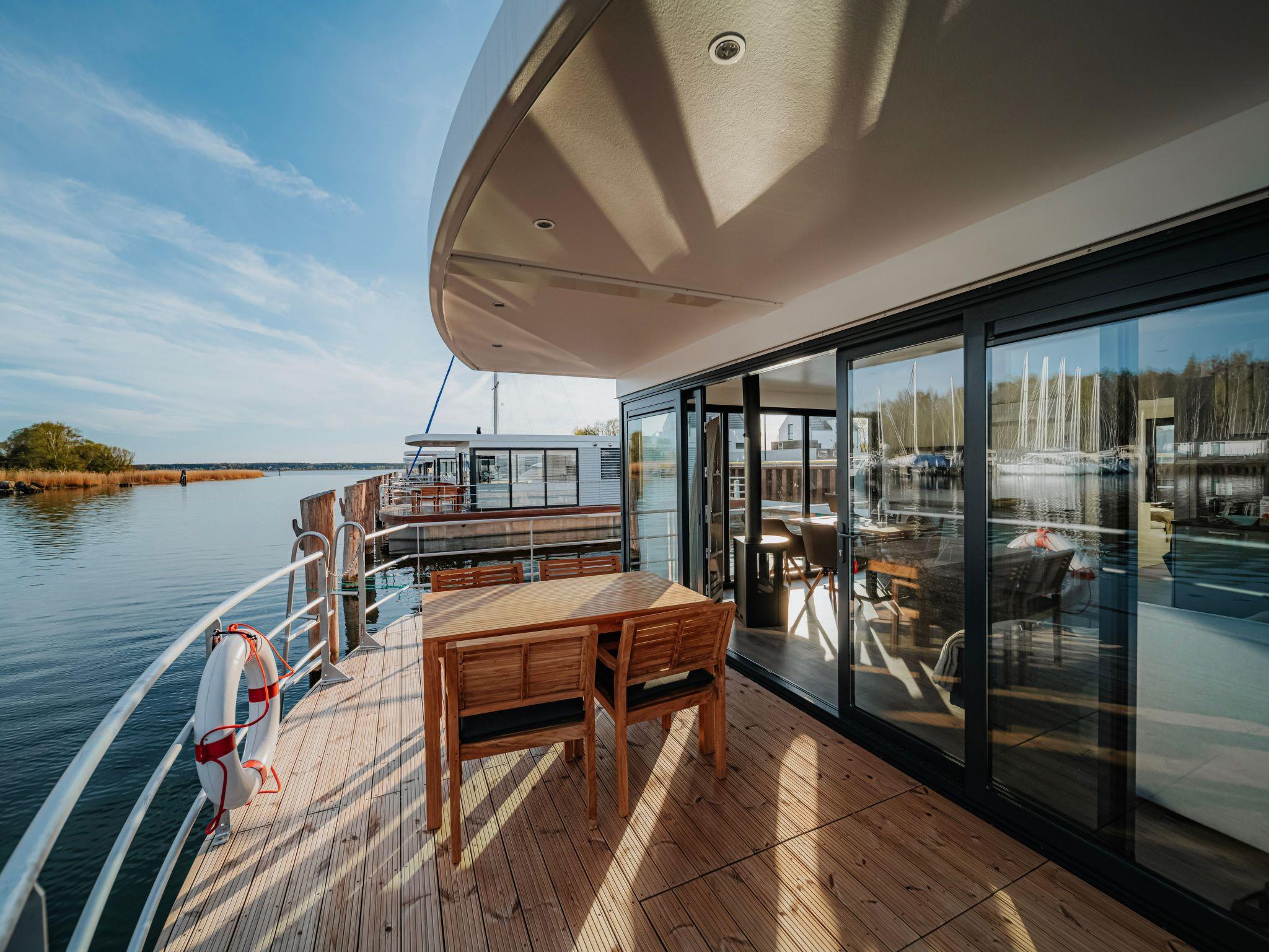 Erleben Sie erholsamen Urlaub im modernen Floatinghouse Trinity direkt im Yachthafen Peenemünde auf Usedom.