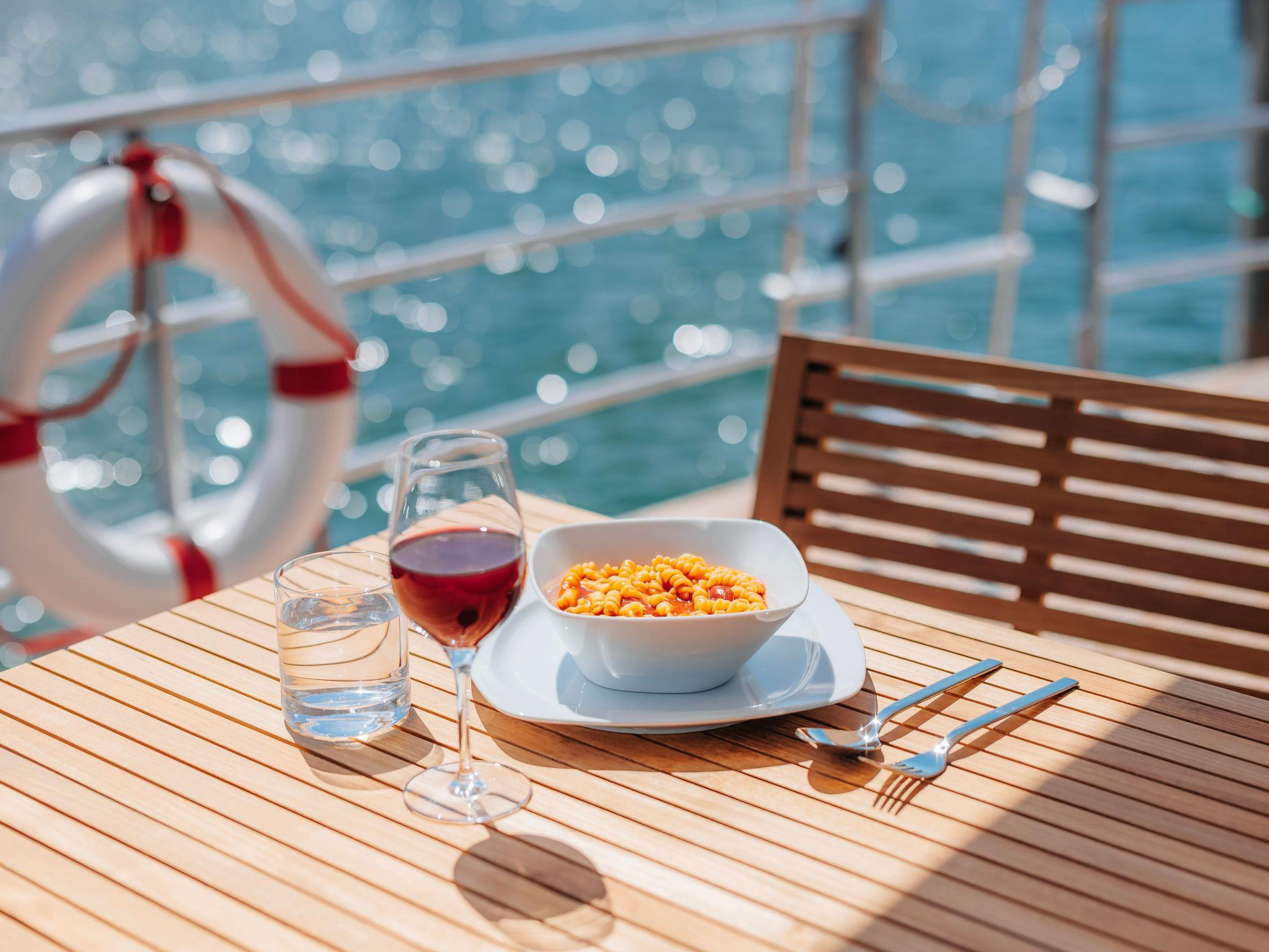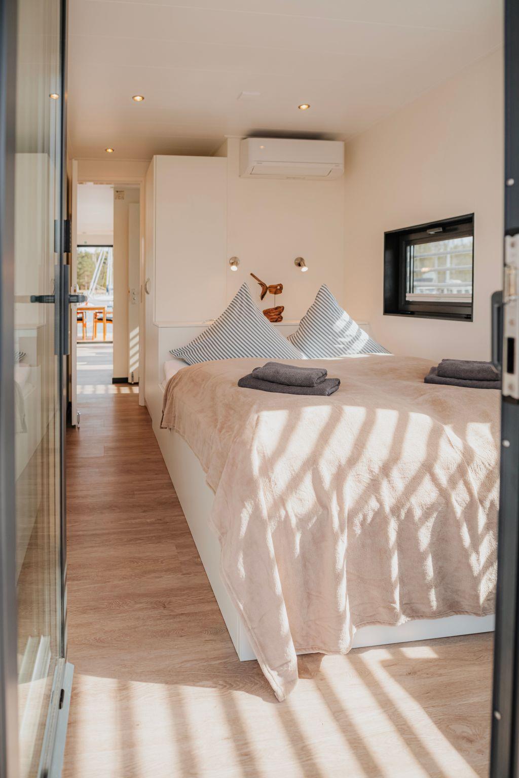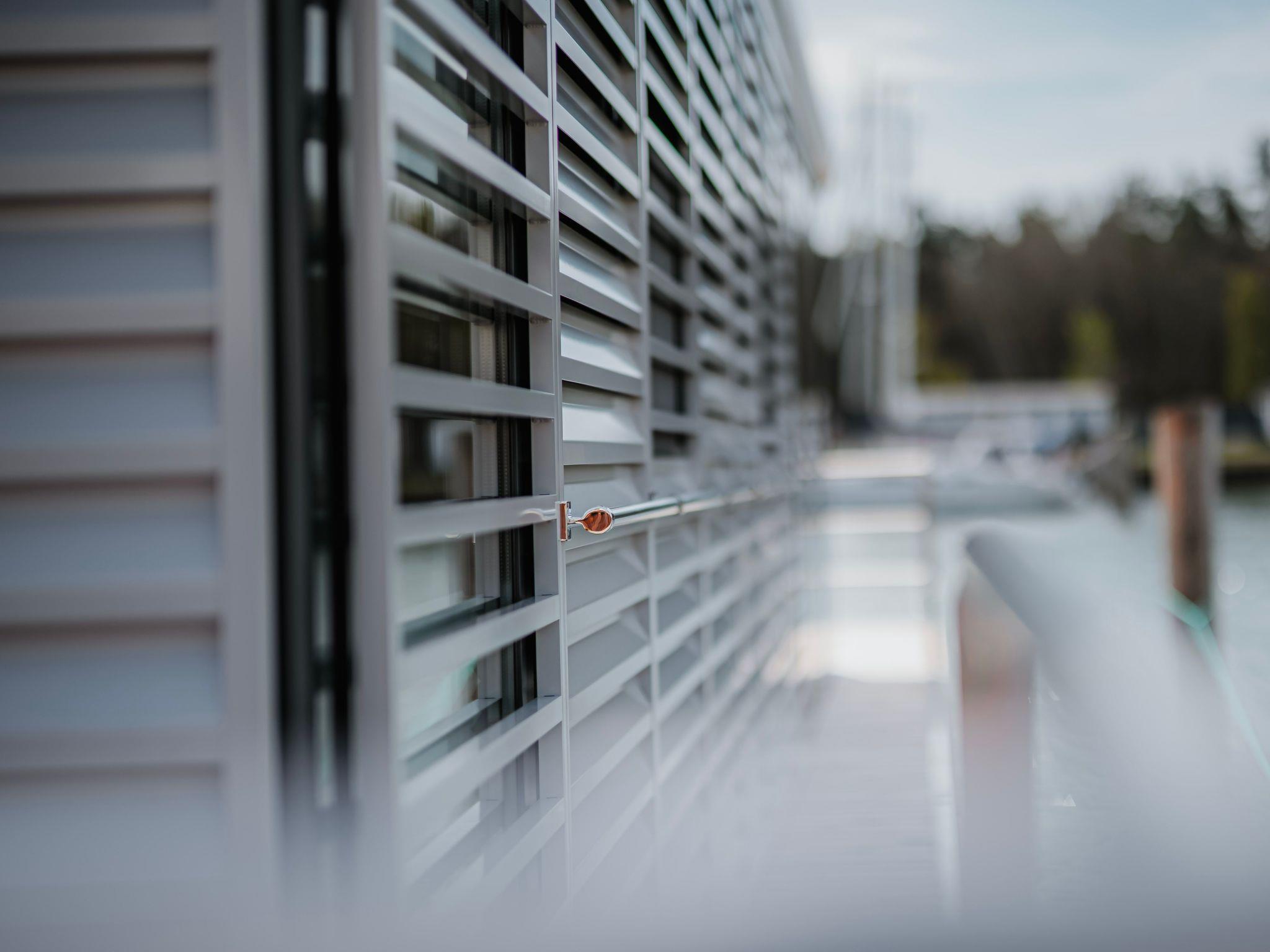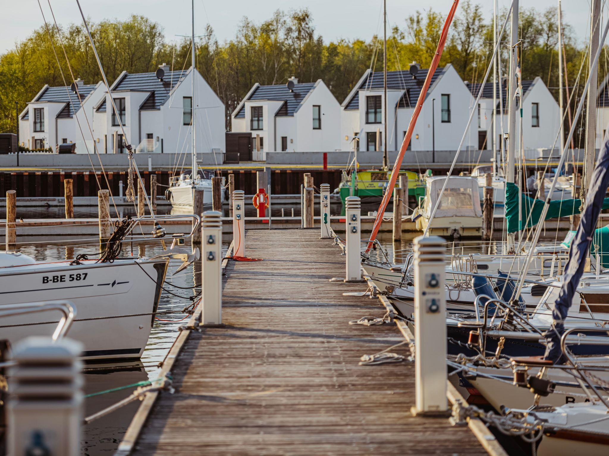 Erleben Sie erholsamen Urlaub im modernen Floatinghouse Trinity direkt im Yachthafen Peenemünde auf Usedom.