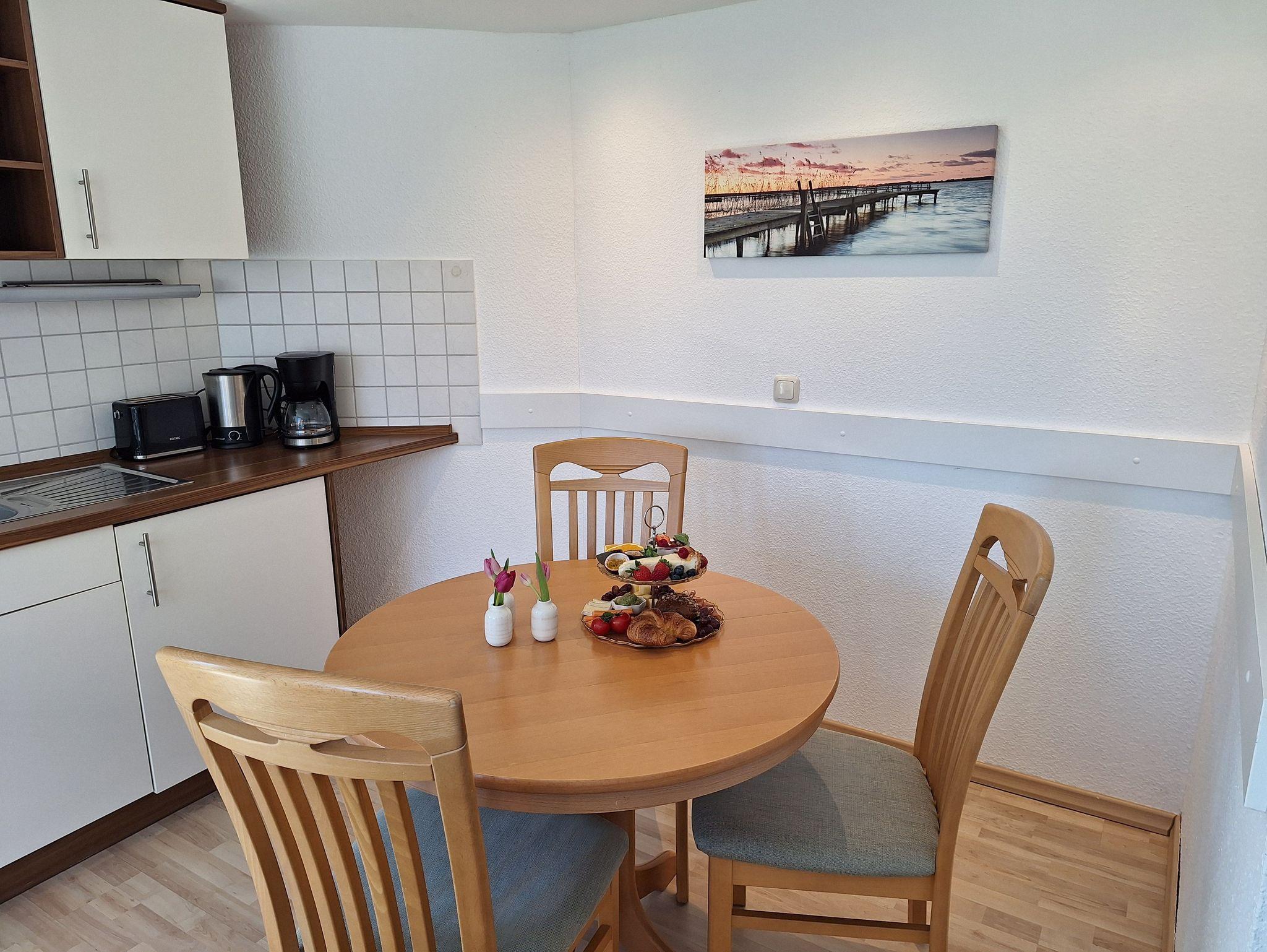 Essplatz mit Tisch und drei Stühlen für gemeinsame Mahlzeiten