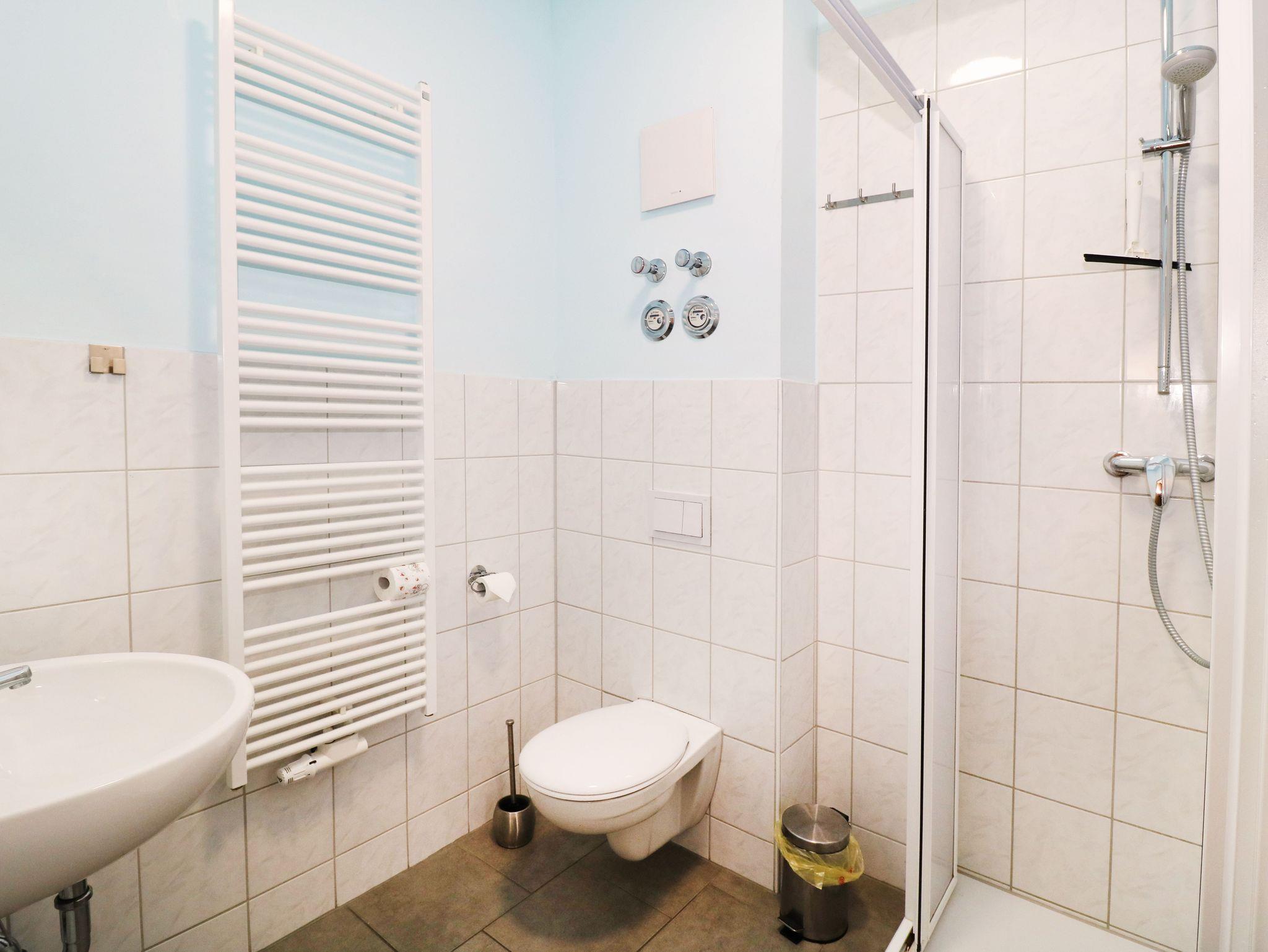 Die Ferienwohnung Q13 im Ferienhaus Quartier 18 befindet sich im Erdgeschoss und bietet auf 50 m² gemütlichen Wohnkomfort für bis zu vier Personen. Die 2-Raum-Wohnung verfügt über ein einladendes Schlafzimmer sowie ein modernes Badezimmer mit einer ebenerdigen Dusche.