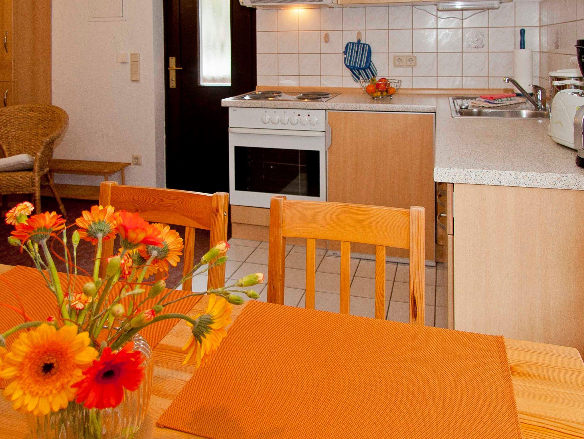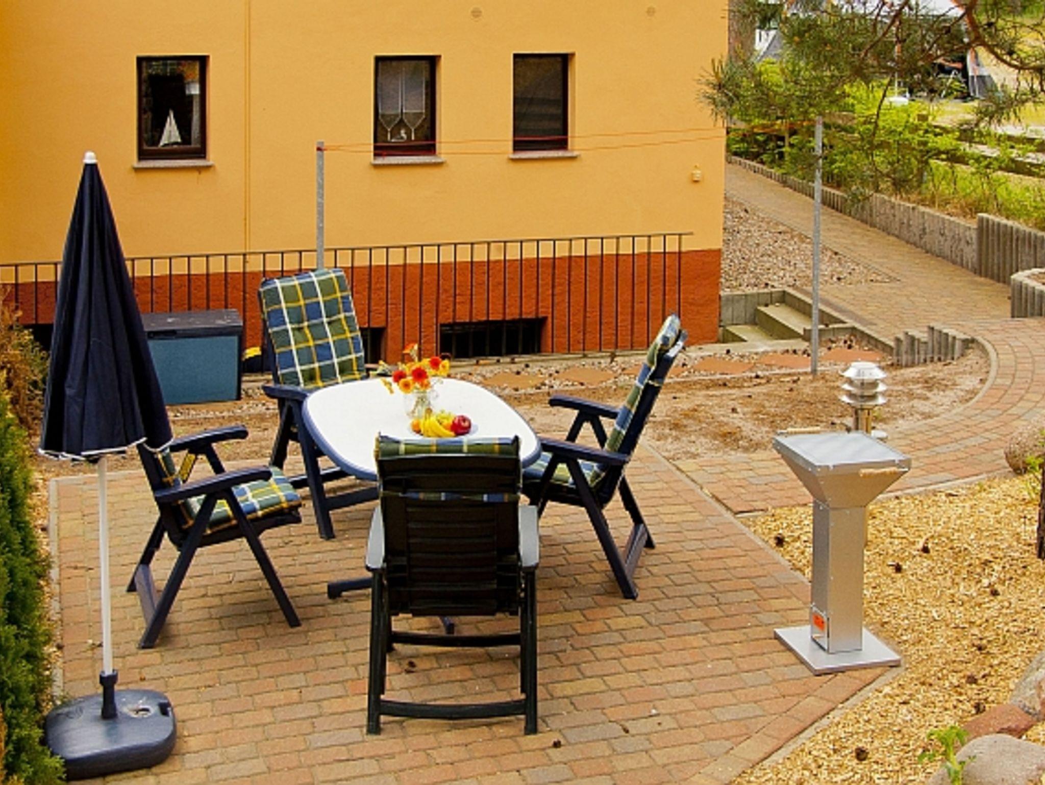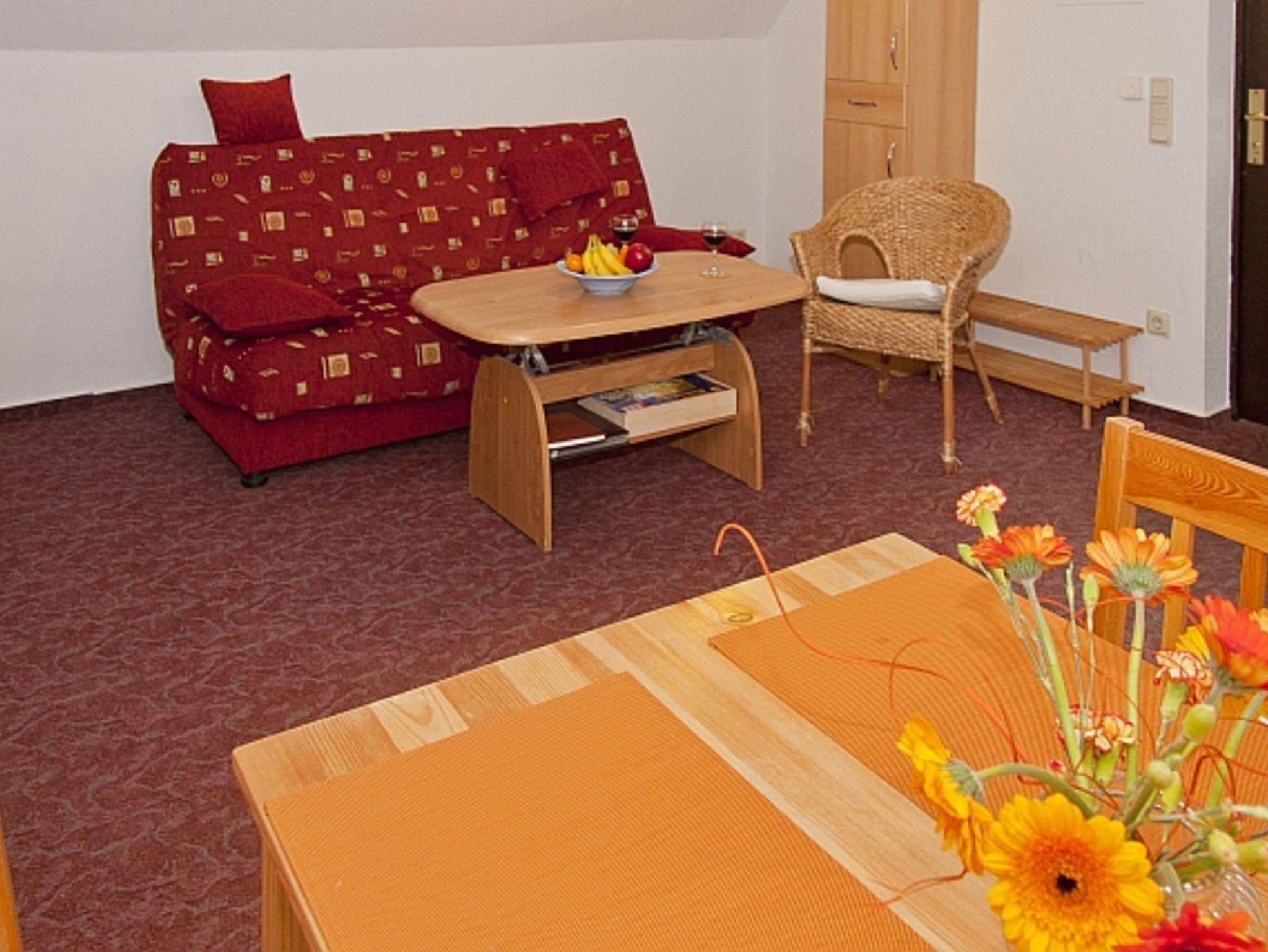 Die OG-Fewo besteht aus Wohnzimmer mit Einbauküche,Schlafzimmer mit Doppelbett, Bad sowie einem geräumigen Schlafboden.Im Wohnzimmer finden Sie Couch, - tisch, Radio/TV und Essecke, Küche mit u.a.Kompakt-Backofen mit Mikrowelle,Kühlschrank mit Gefrierfach, Geschirr. Auf dem Schlafboden gibt es ein 2 Einzelbetten.Es gibt Bad mit Dusche, WC, Waschtisch, Fön. Zur Fewo gehören Balkon, eigene Terrasse, Holzkohlegrill, Parkplatz..Wir bitten Sie das Rauchen in der Wohnung zu unterlassen, da zu unseren Gästen viele Allergiker gehören. Aschenbecher befinden sich vor dem Eingang
