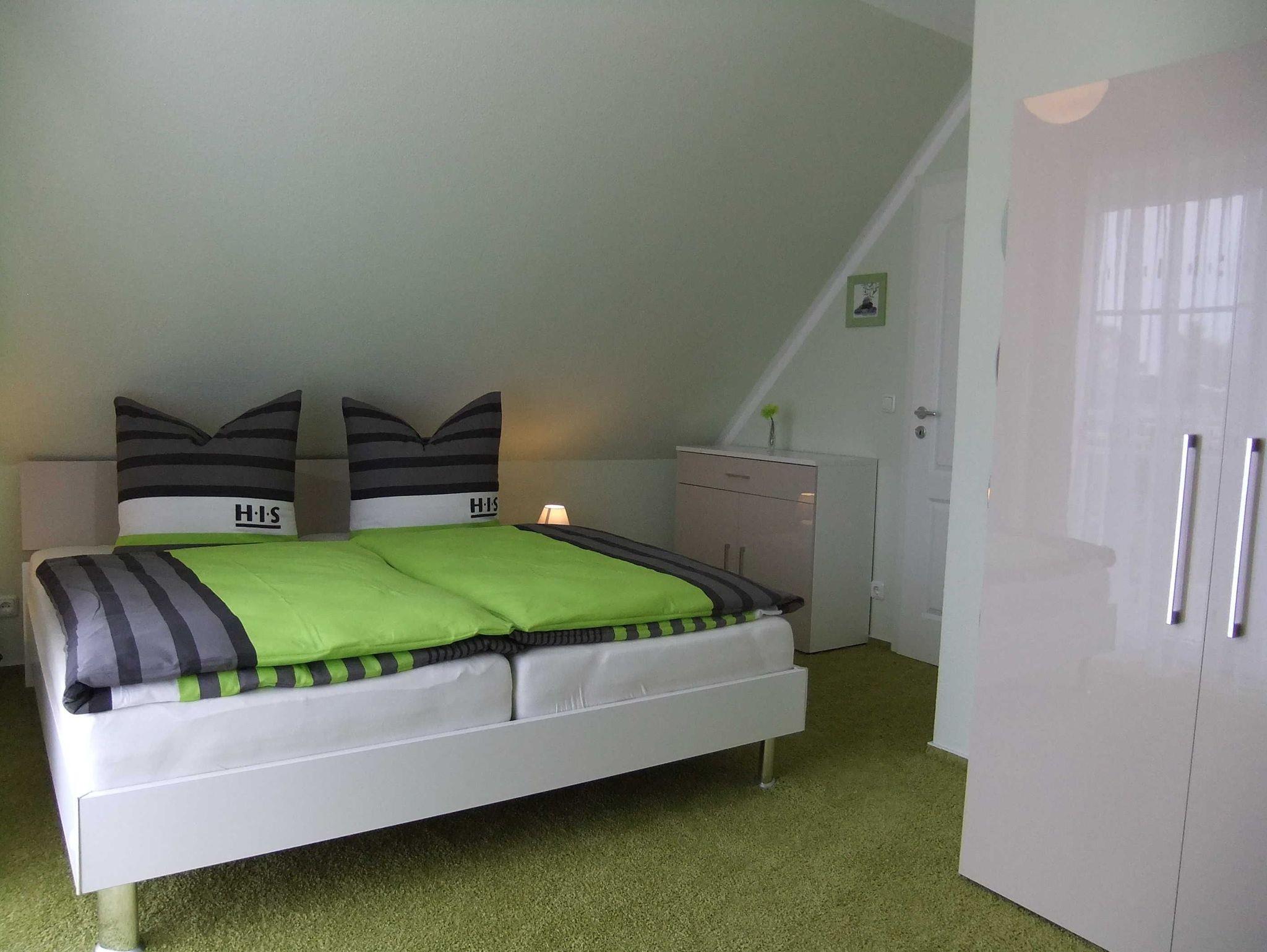 Die Ferienwohnung Malin ist eine 60 m² große, modern ausgestattete Wohnung. Im Obergeschoss befinden sich 1 Schlafzimmer mit Doppelbett (Babybett kostenfrei möglich) und 1 Kinderzimmer mit einem Einzelbett. Im Erdgeschoss befinden sich der Wohn- und Kochbereich sowie das Bad mit Dusche/WC. Das Wohnzimmer ist mit Couchgarnitur, TV u. Radio ausgestattet. Der Kochbereich besteht aus einer Einbauküche mit Geschirrspüler, Backofen, Kaffeemaschine, Wasserkocher, Toaster und Mikrowelle sowie einem Essbereich. Die Terrasse ist mit Sitzmöbeln ausgestattet, im Garten befindet sich eine Sitzecke mit Grillmöglichkeit. Ein PKW-Stellplatz und Unterstellmöglichkeit für Fahrräder sind auf dem Grundstück vorhanden. Bettwäsche, Geschirrhandtücher, Nebenkoste, Endreinigung und WLAN sind im Preis inklusive. Handtücher bringen Sie bitte mit. Die Ferienwohnung ist eine Nichtraucherwohnung, Haustiere sind nicht erlaubt.