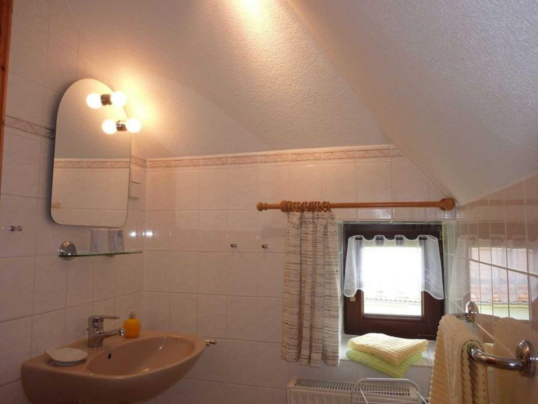 Im Bad finden Sie ein Handwaschbecken, Dusche, WC und Fön.