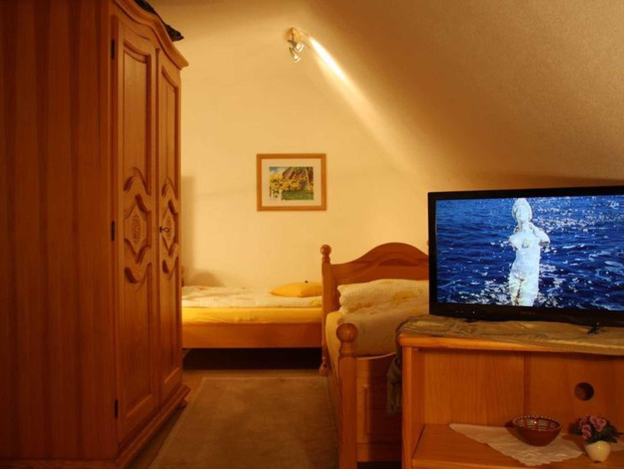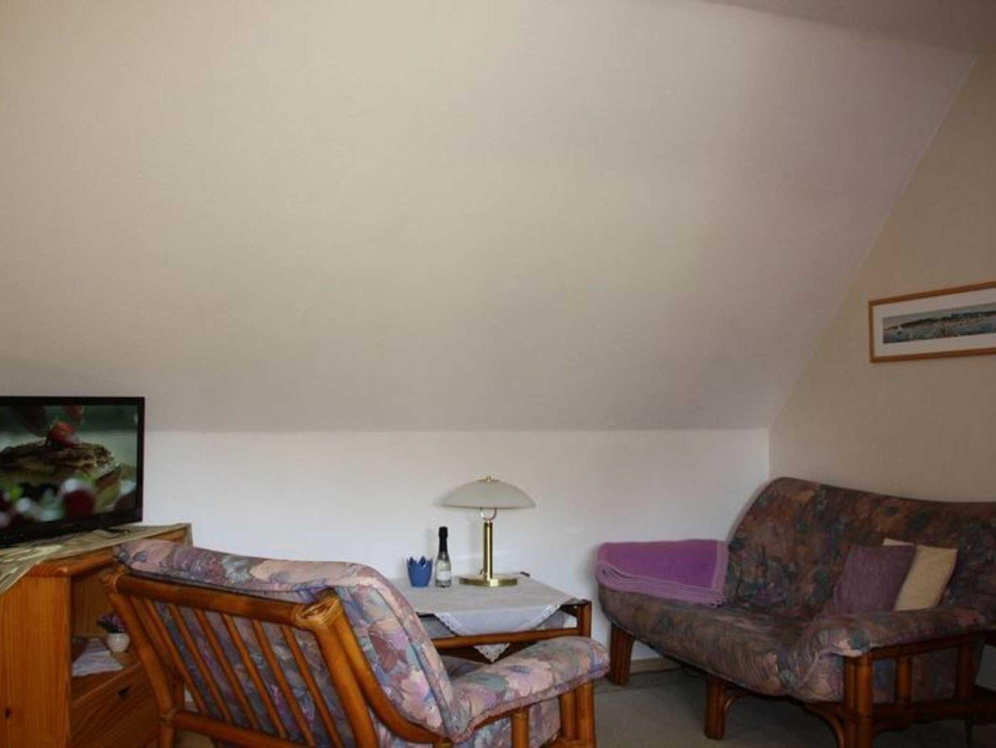Das Appartement befindet sich in der 1. Etage. Im Wohnbereich relaxen Sie auf einer gemütlichen Couch, der Flachbild-TV sorgt für den Blick in die Welt.