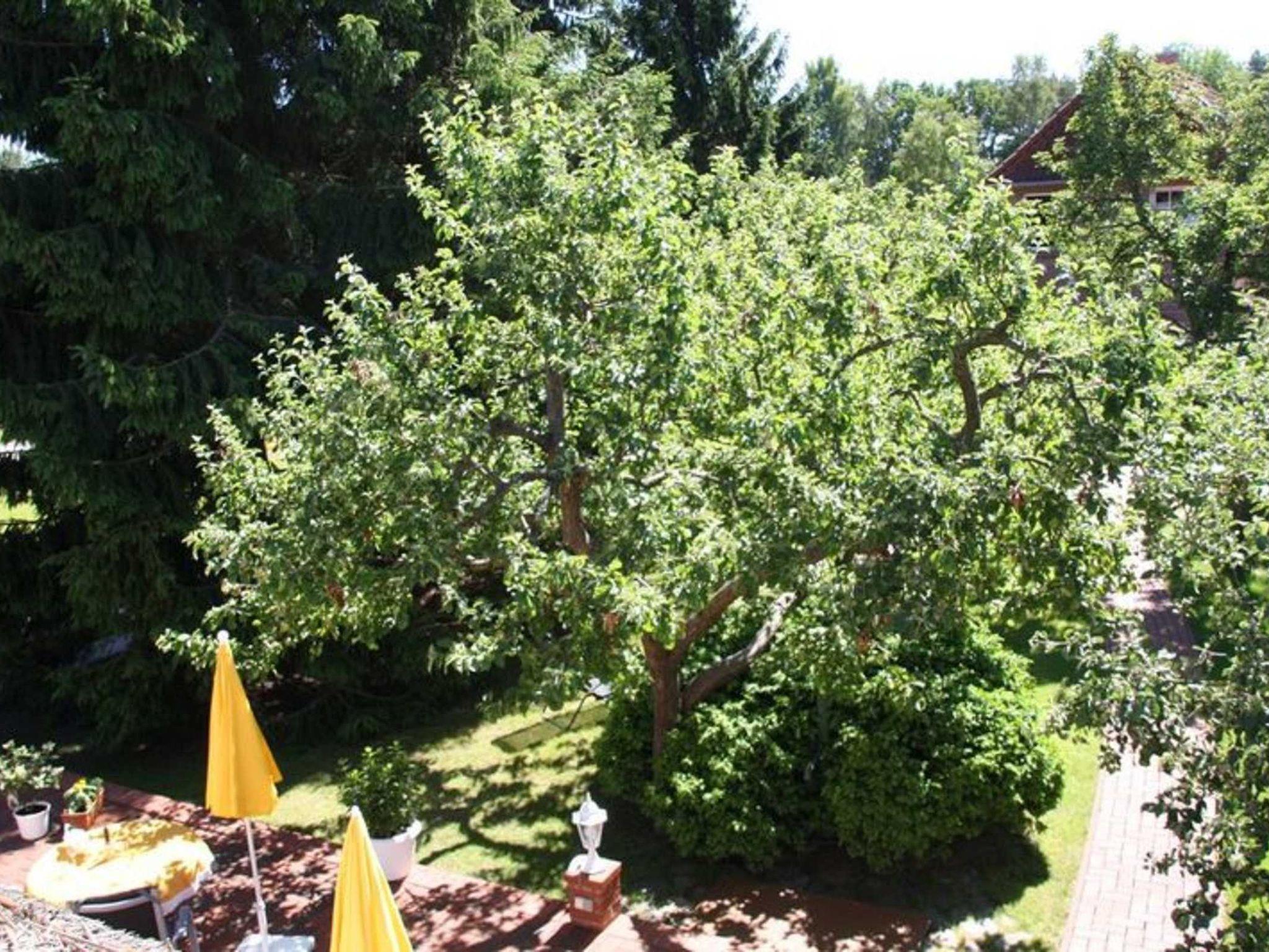 Das voll sanierte alte Reetdach - Fischerhaus Baujahr 1857 verfügt über vier gemütliche Ferienwohnungen mit Südterrasse und Liegewiese inmitten alter Bäume. Im Jahr 2021 erhielt das Gebäude ein neues Reetdach.