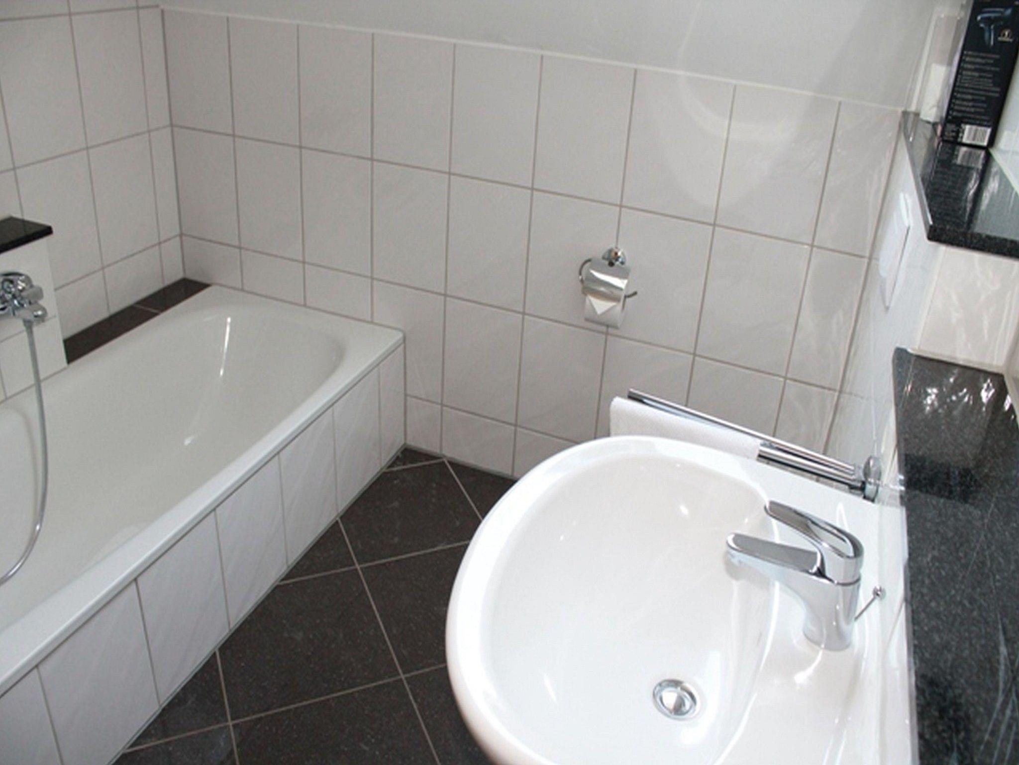 Direkt am Wohnzimmer ist der Balkon. Im Wohnzimmer befindet sich ein großes Sofa, eine Ess-Ecke sowie eine Pantryküche(mit Mikrowelle). Das Bad ist mit einer Dusche und einer Badewanne sowie einem Handtuch-Heizkörper ausgestattet.