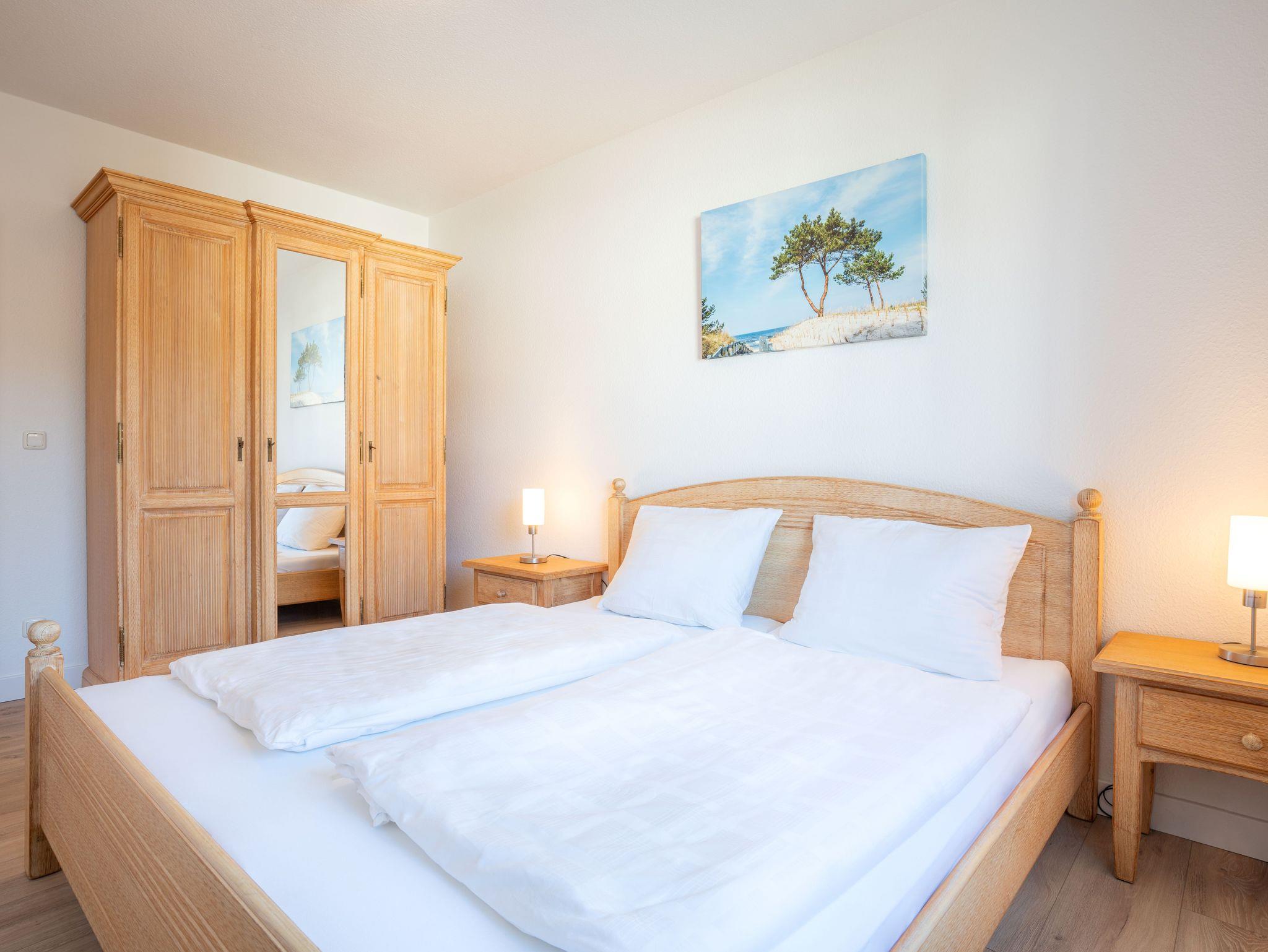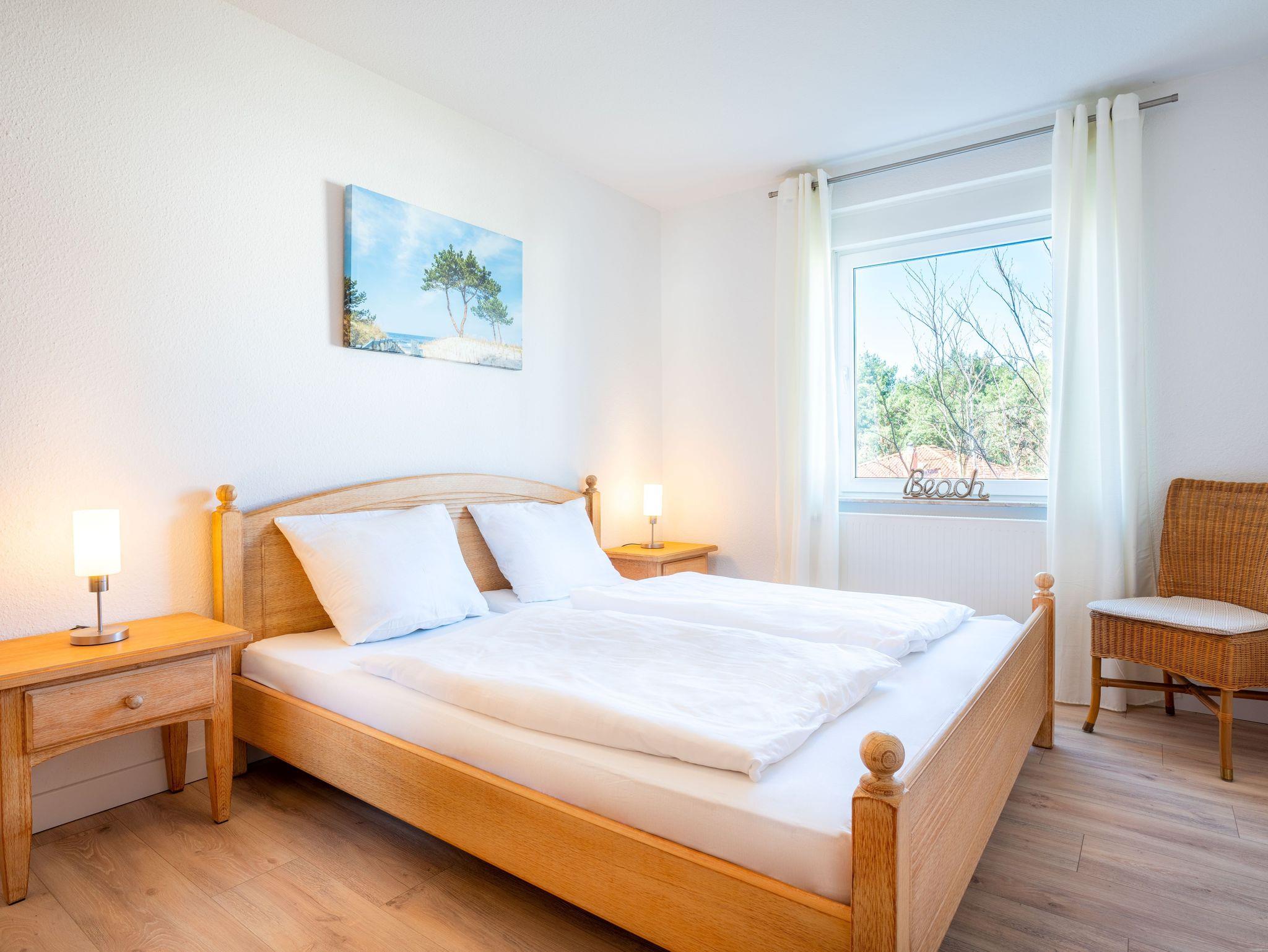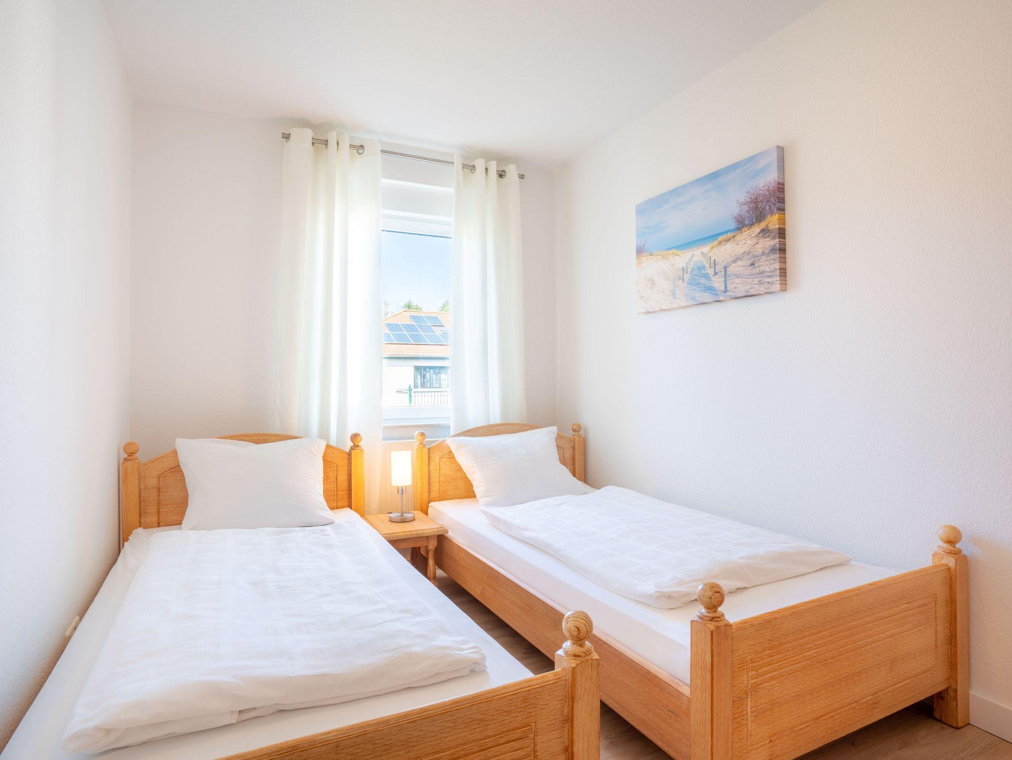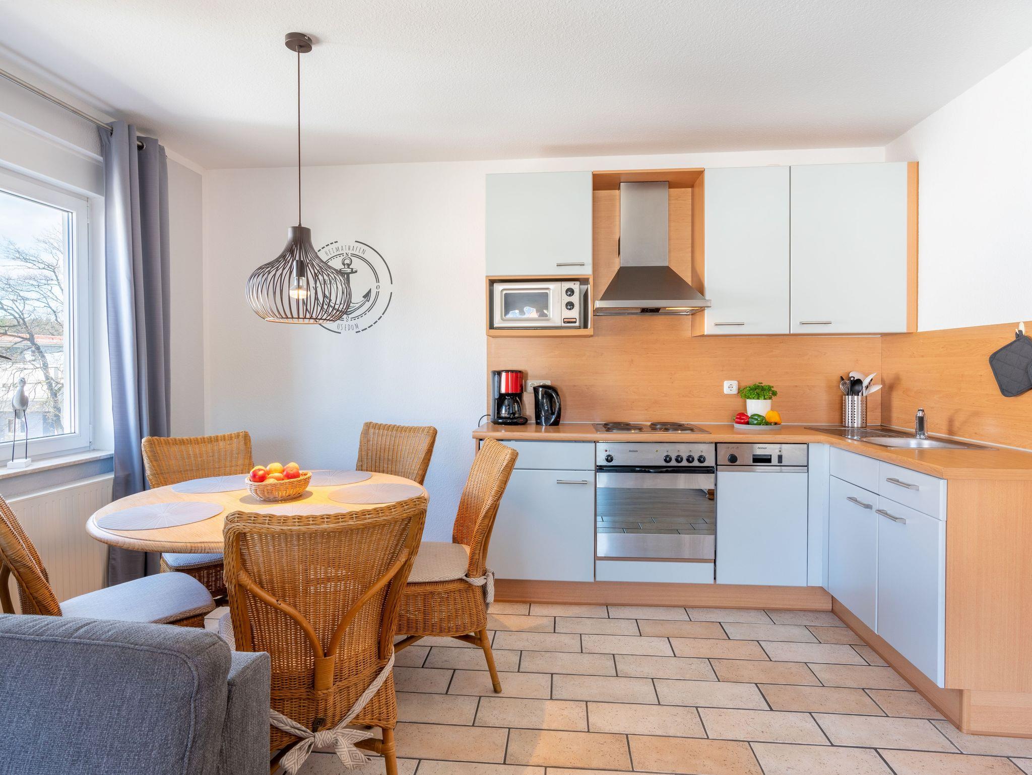 Der behagliche Wohnraum mit einer gemütlichen Sitzecke und einem Fernseher, sowie die komplett eingerichtete, offene Küche bieten einen guten Ort um sich gemeinsam in der Wohnung zu entspannen. Durch die zwei Schlafzimmer, gibt es jedoch auch einen ruhigen Rückzugsort um abzuschalten. Ein Schlafzimmer ist mit einem Doppelbett ausgestattet und eins mit zwei Einzelbetten. Das Badezimmer besitzt eine Dusche und ein WC. Auf dem Balkon können Sie gemütlich den Abend ein- und ausklingen lassen. WLAN ist vorhanden. Waschmaschine und Trockner können Sie gegen Entgelt verwenden. Natürlich stellen wir Ihnen ein PKW-Parkplatz vor dem Haus zur Verfügung. Zum feinsandigen, weißen Badestrand sind es nur ca. 3-4 Gehminuten.