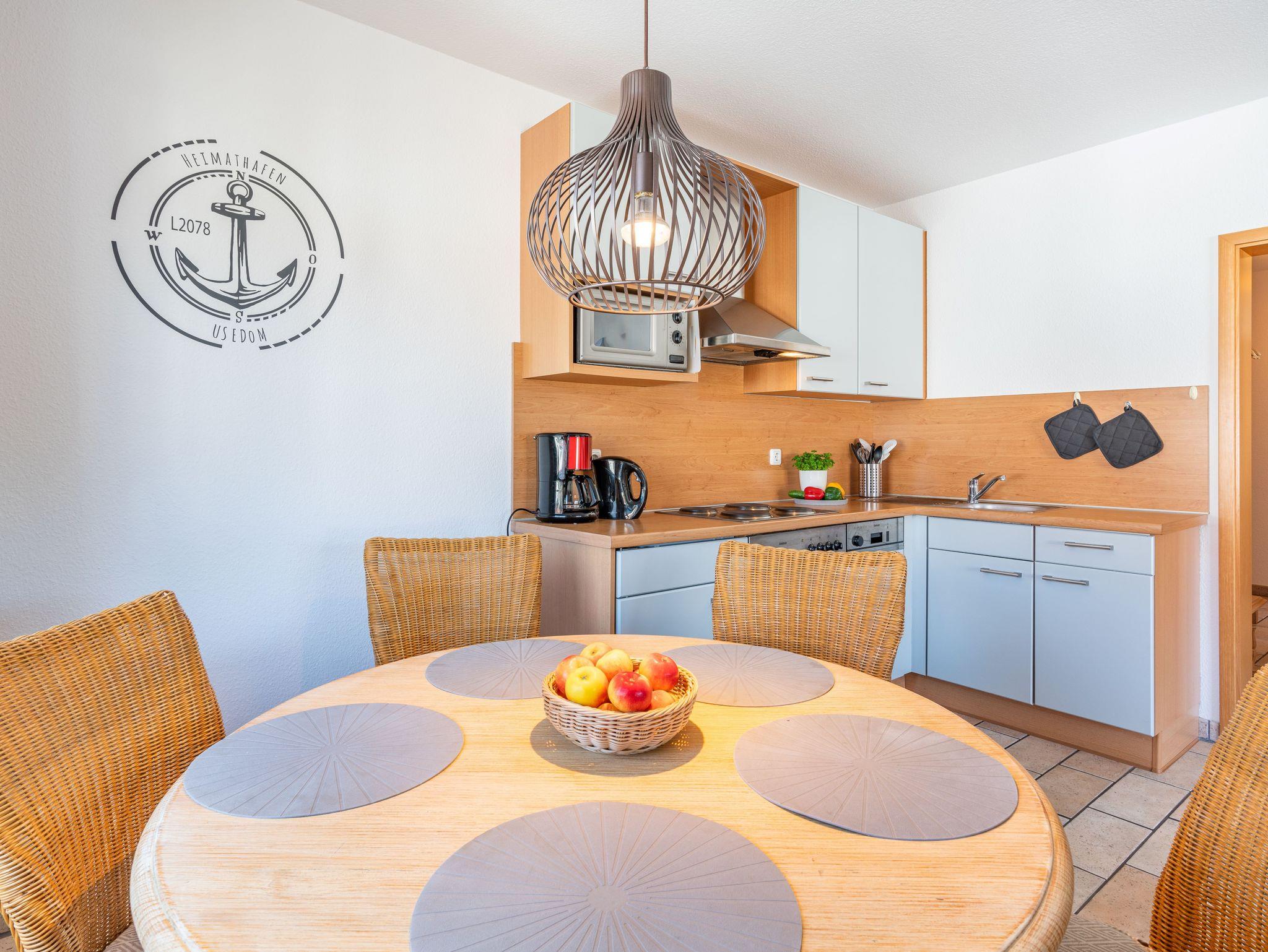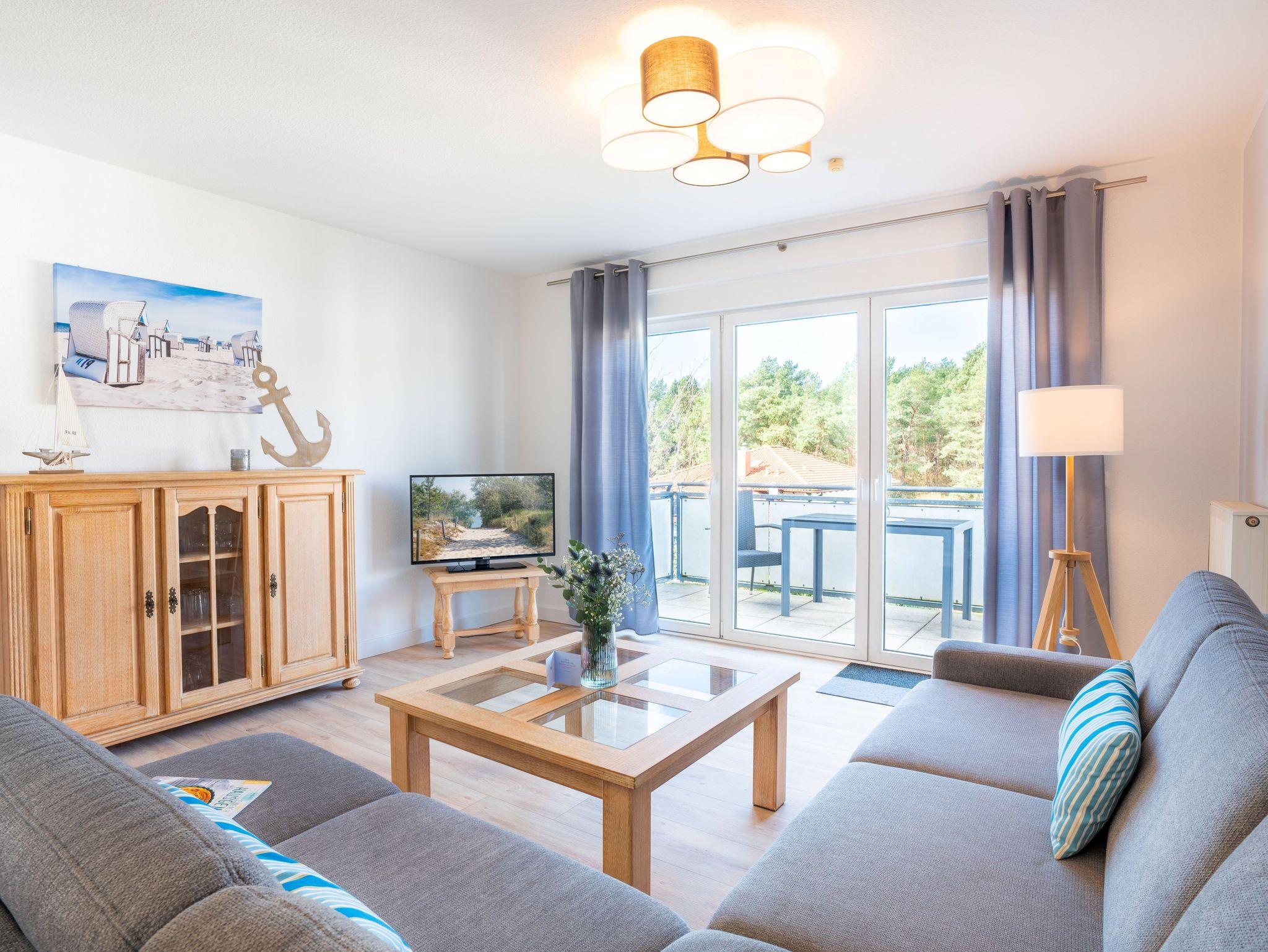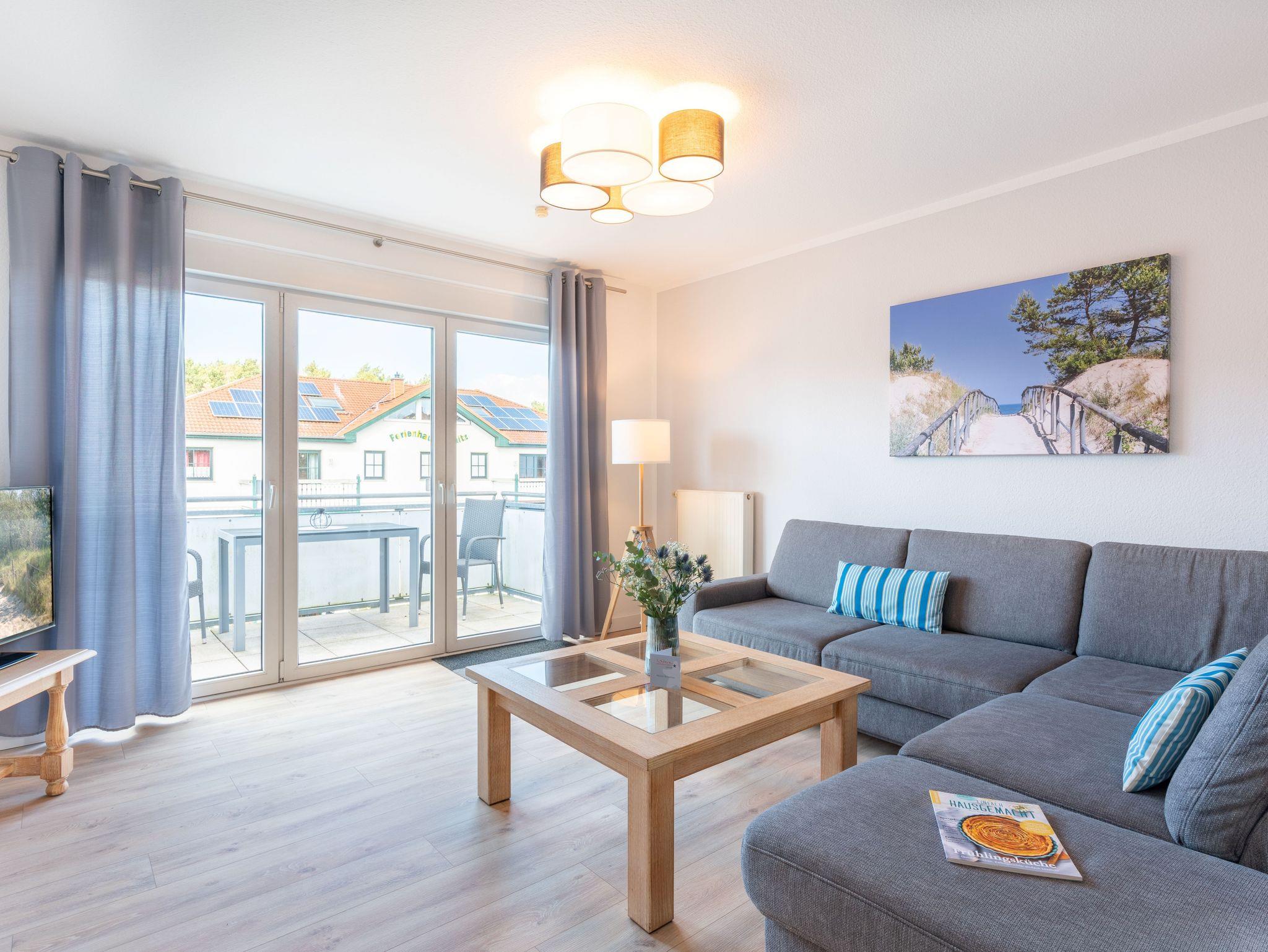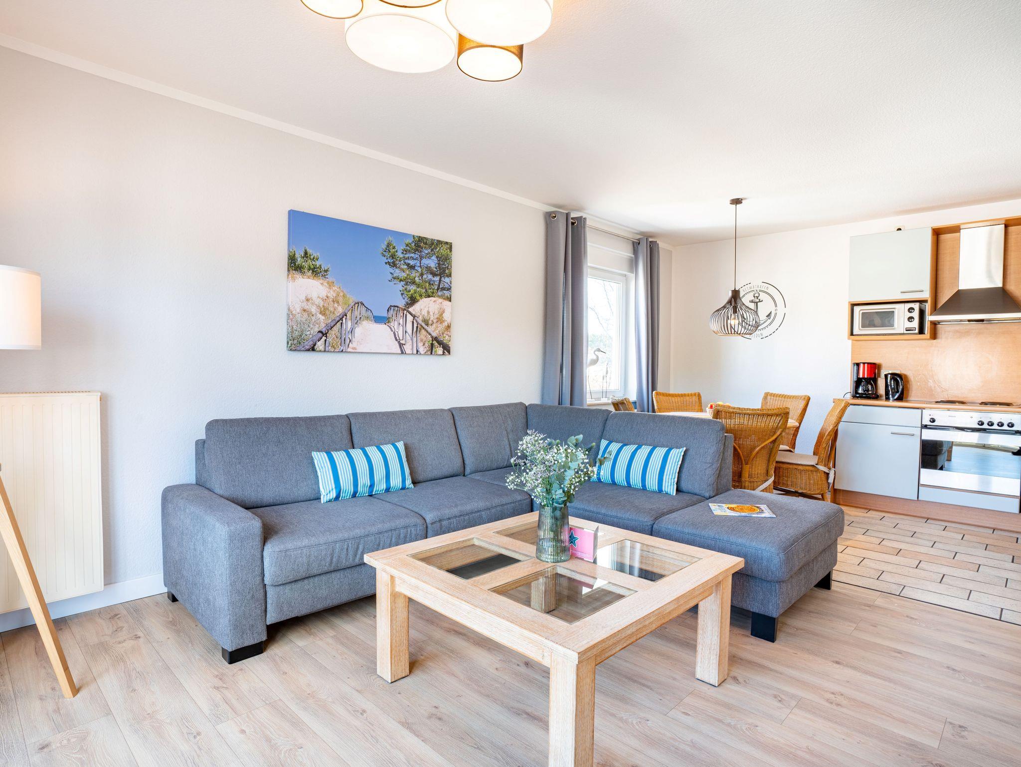 Der behagliche Wohnraum mit einer gemütlichen Sitzecke und einem Fernseher, sowie die komplett eingerichtete, offene Küche bieten einen guten Ort um sich gemeinsam in der Wohnung zu entspannen. Durch die zwei Schlafzimmer, gibt es jedoch auch einen ruhigen Rückzugsort um abzuschalten. Ein Schlafzimmer ist mit einem Doppelbett ausgestattet und eins mit zwei Einzelbetten. Das Badezimmer besitzt eine Dusche und ein WC. Auf dem Balkon können Sie gemütlich den Abend ein- und ausklingen lassen. WLAN ist vorhanden. Waschmaschine und Trockner können Sie gegen Entgelt verwenden. Natürlich stellen wir Ihnen ein PKW-Parkplatz vor dem Haus zur Verfügung. Zum feinsandigen, weißen Badestrand sind es nur ca. 3-4 Gehminuten.