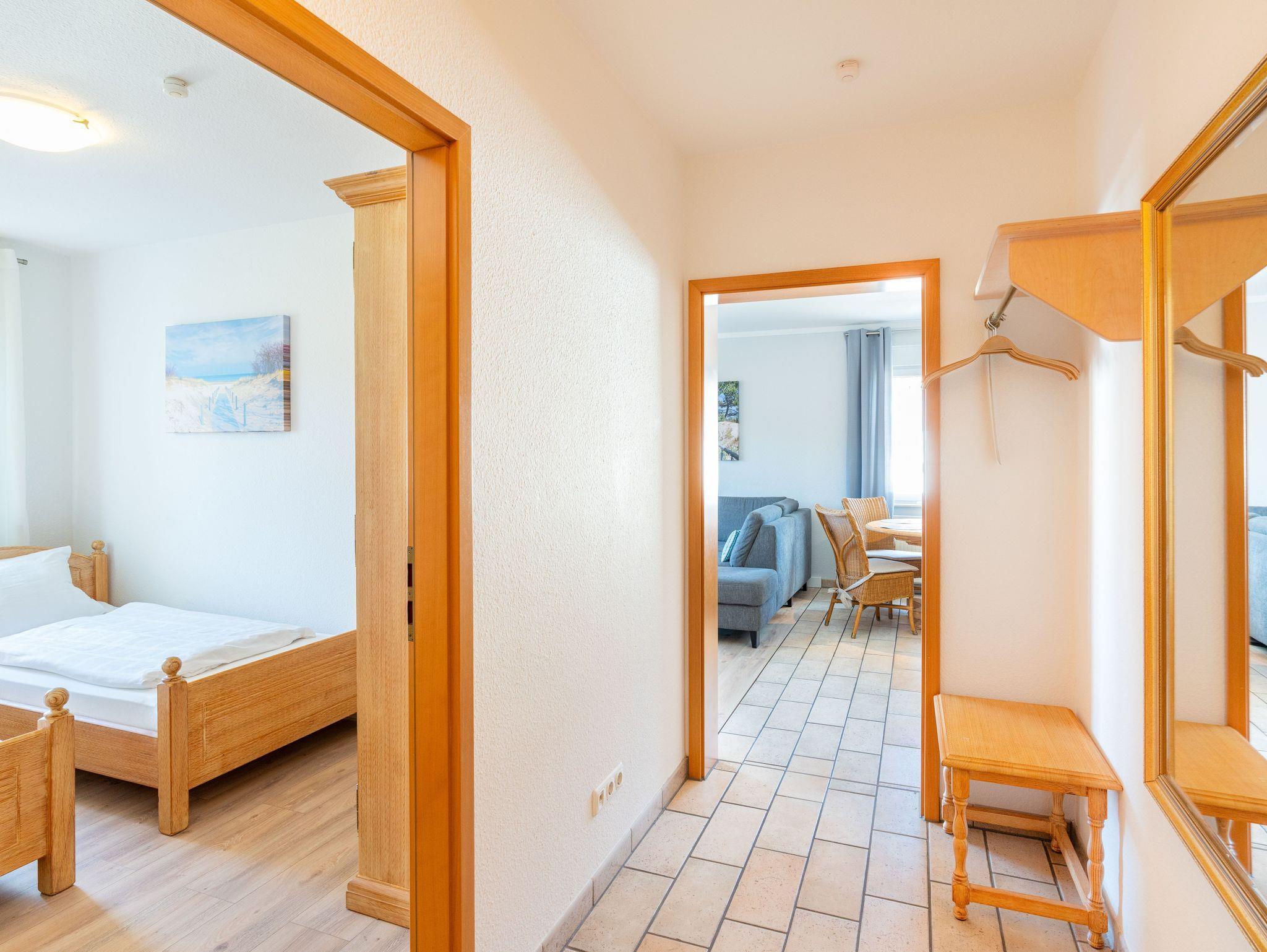 Die Ferienwohnungen vom Typ 2 sind gemütlich eingerichtet. Sie verfügen über 69 m² und sind für bis zu 6 Personen ausgelegt (4 Pers. + 2 Aufbettungen). Sie besitzen zwei Schlafzimmer, ein Wohnbereich mit einer offenen Küche und ein Badezimmer.