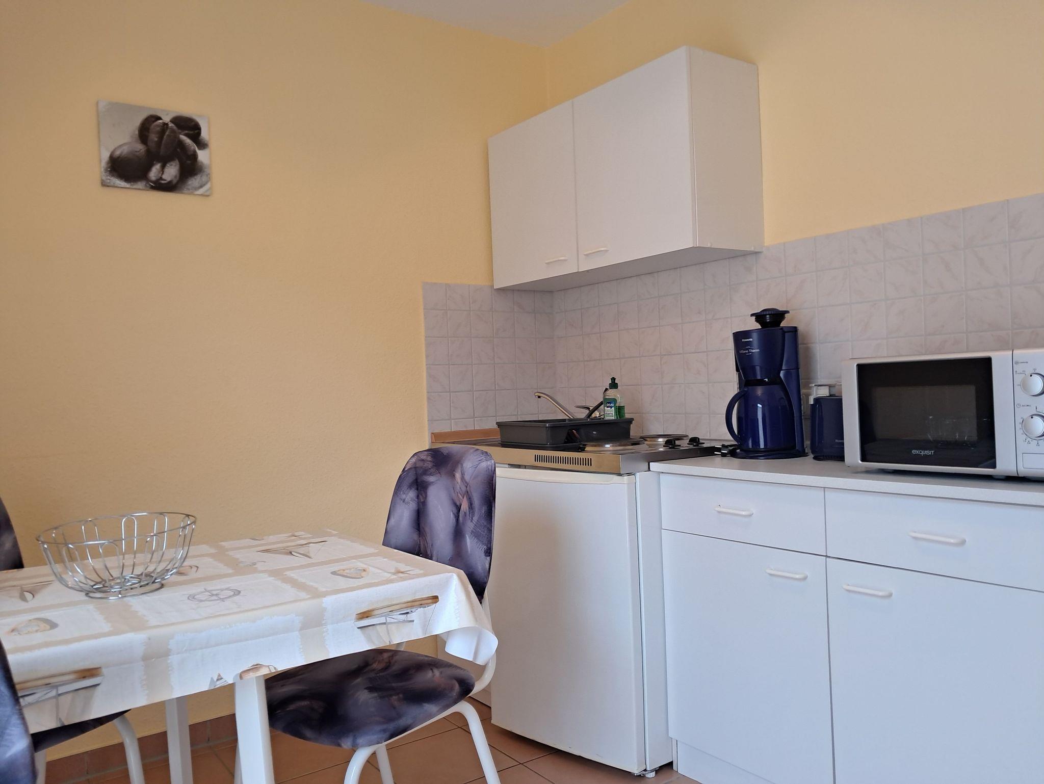 1 Ferienwohnung (50m²) für 3 Pers.. - Parkplatz am Haus - Terrasse mit Sitzecke und Grill - Bettwäsche inkl. - Handtücher bitte mitbringen - Wohnzimmer, TV, Radio - zwei Schlafzimmer - Miniküche mit Geschirr - Bad mit Dusche/WC
