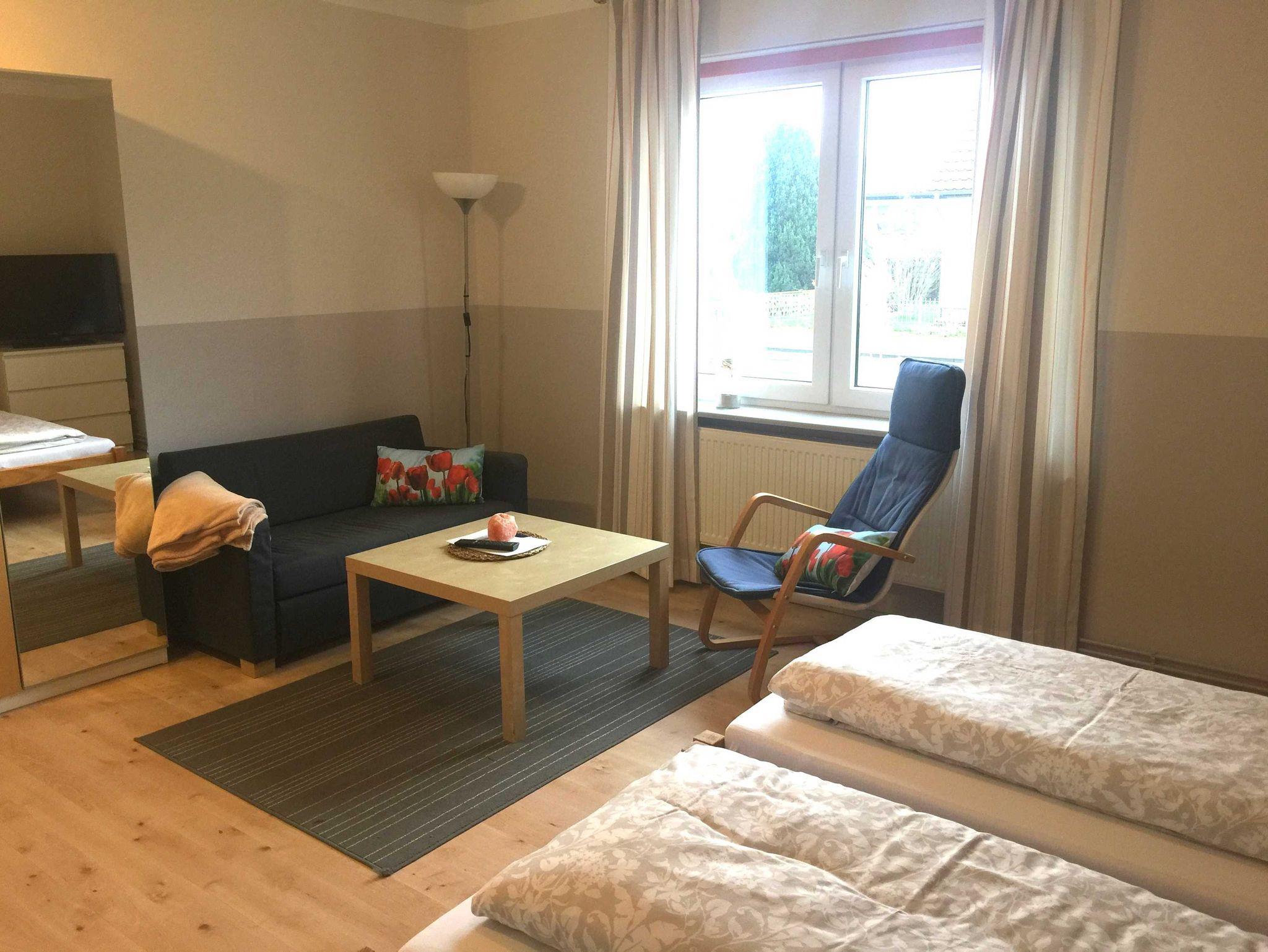 Die stilvoll und funktionell eingerichteten Apartments sind für 2 Erwachsene geeignet sowie zusätzlich ein Kind bis maximal 12 Jahre, welches auf dem Schlafsofa Schlafzimmer übernachtet. Die Bereitstellung eines Kinderreisebettes ist gegen Gebühr ebenfalls möglich. Ein möblierter Balkon, Abstellmöglichkeiten unter dem Carport für Fahrräder mit E-Bike Ladestation und ein PKW-Stellplatz sind vorhanden.