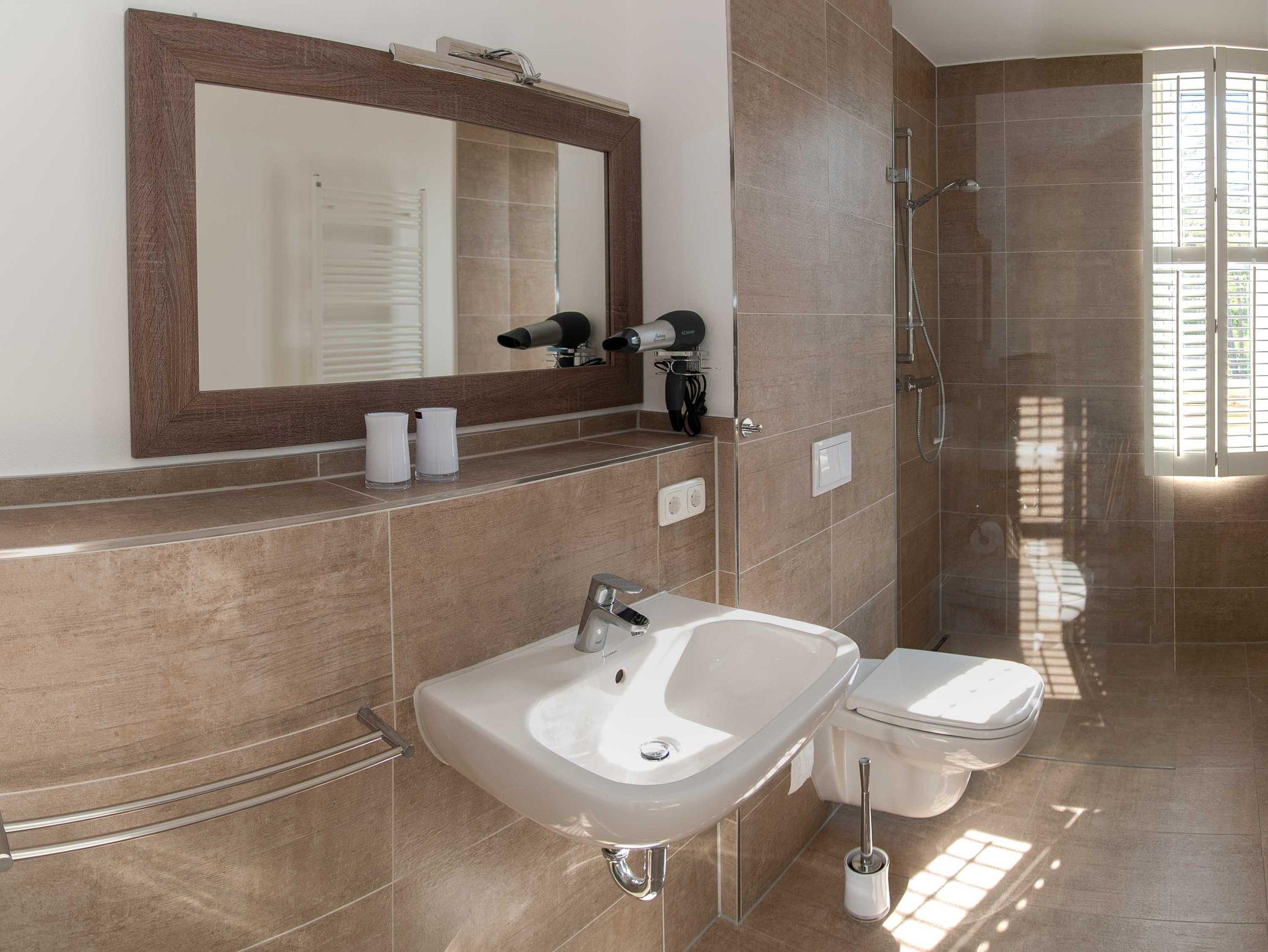 • Badezimmer mit barrierefreier Dusche und Handtuchtrockner