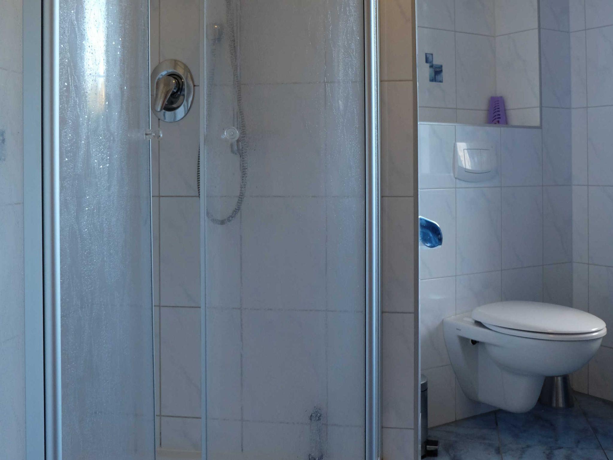 Die beiden Schlafzimmer sind mit einem Doppelbett bzw. Einzelbetten und Schrank ausgestattet. Im Badezimmer befindet sich ein WC und eine Dusche. Zusätzlich gibt es in der Wohnung noch ein Gäste-WC.